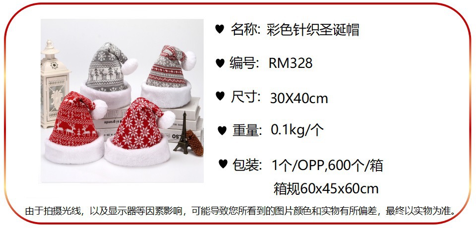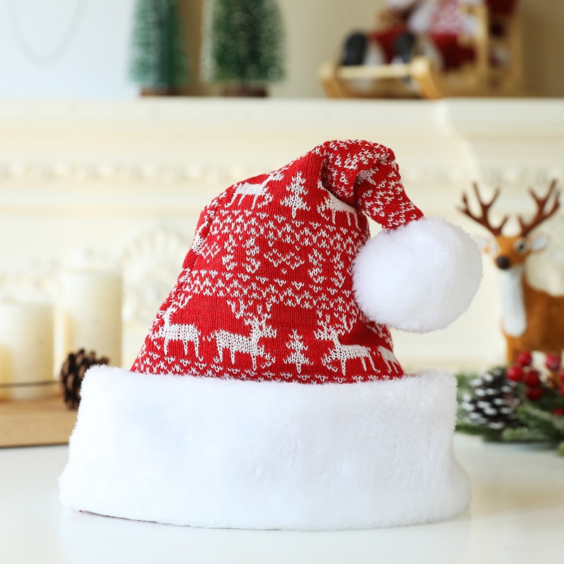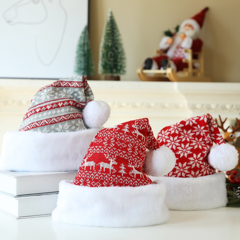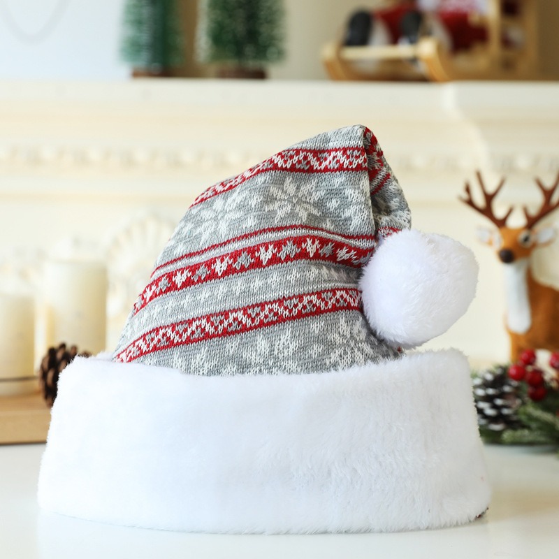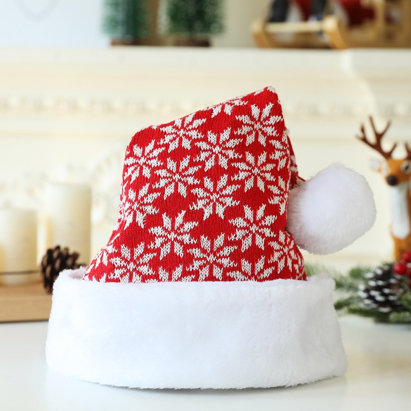2024 nuevo copo de nieve de alta gama de alta gama, lana de punto grueso, gorro de Navidad, sombrero de terciopelo de doble cara de Santa Claus