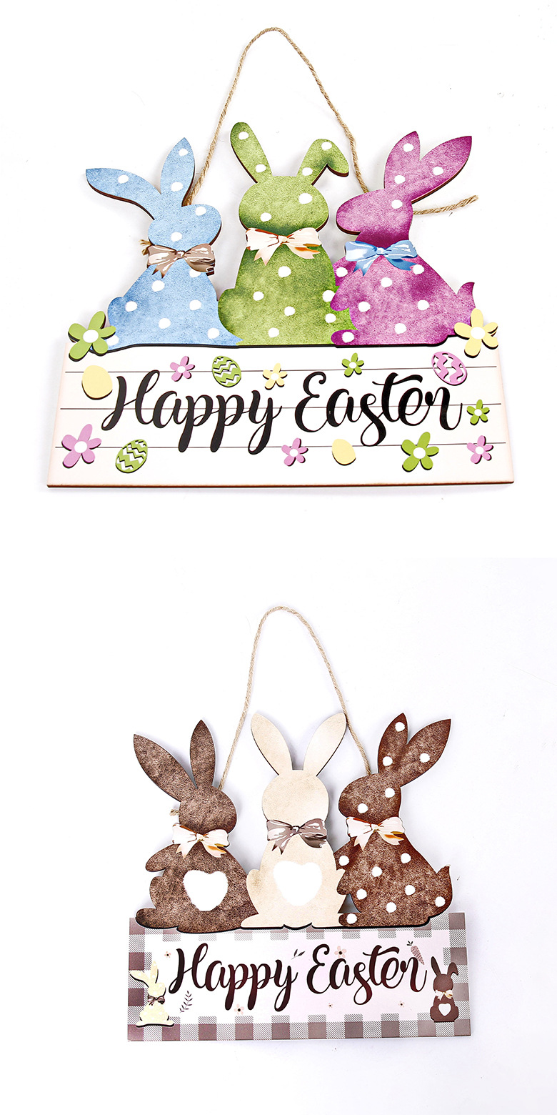 Transfronterizos de dibujos animados de Pascua conejo logotipo de madera lista primavera conejo decoración de madera colgante decoración de Pascua