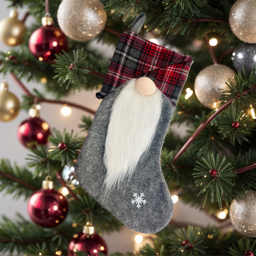 Transfronteriza nuevas decoraciones navideñas a cuadros rojo gris muñeca sin rostro calcetines de Navidad calcetines de regalo de los niños de Navidad