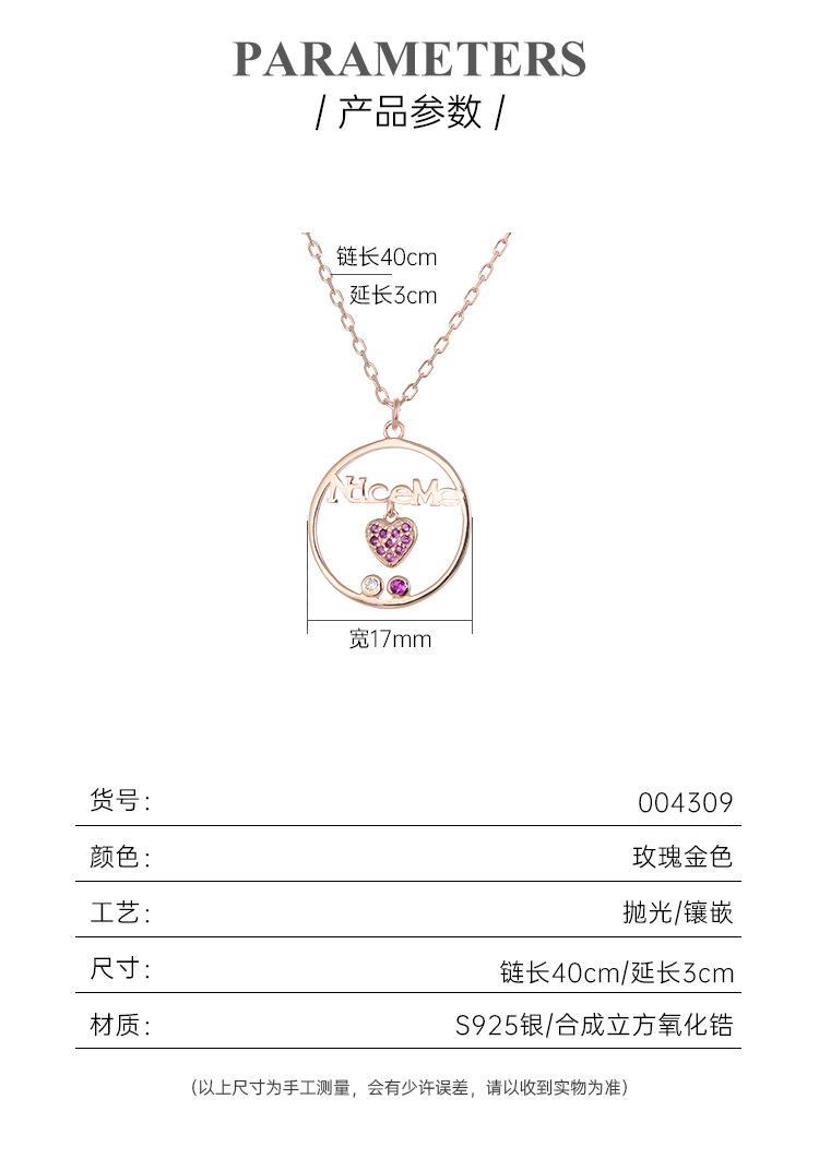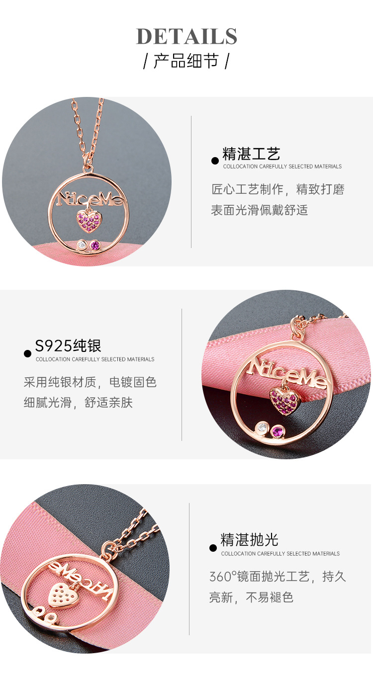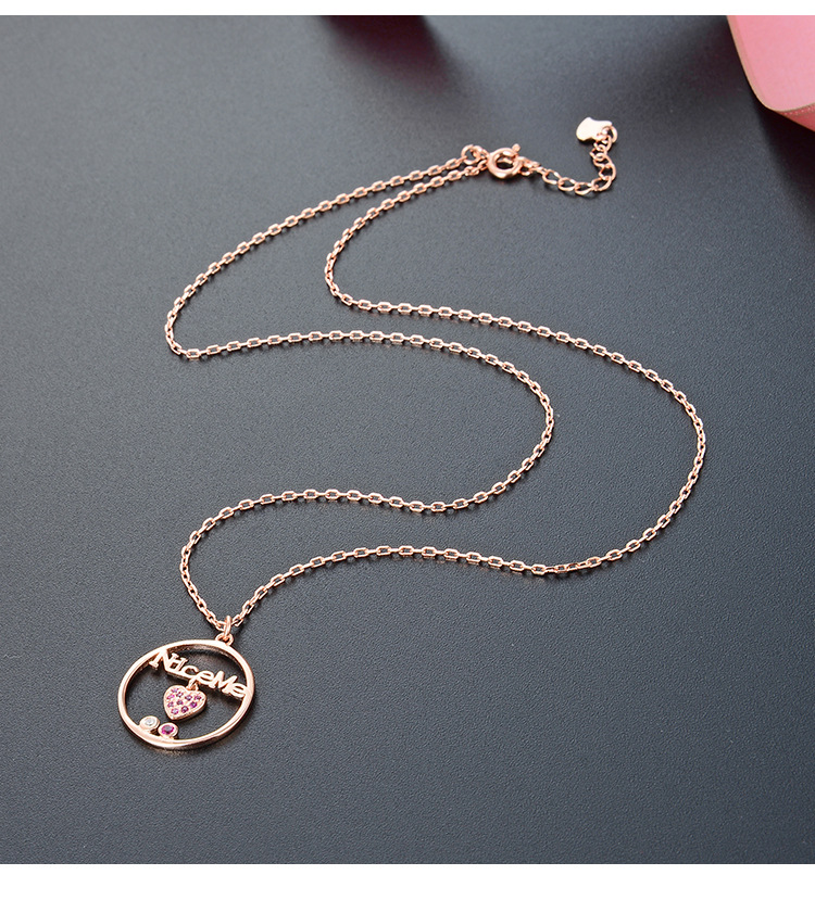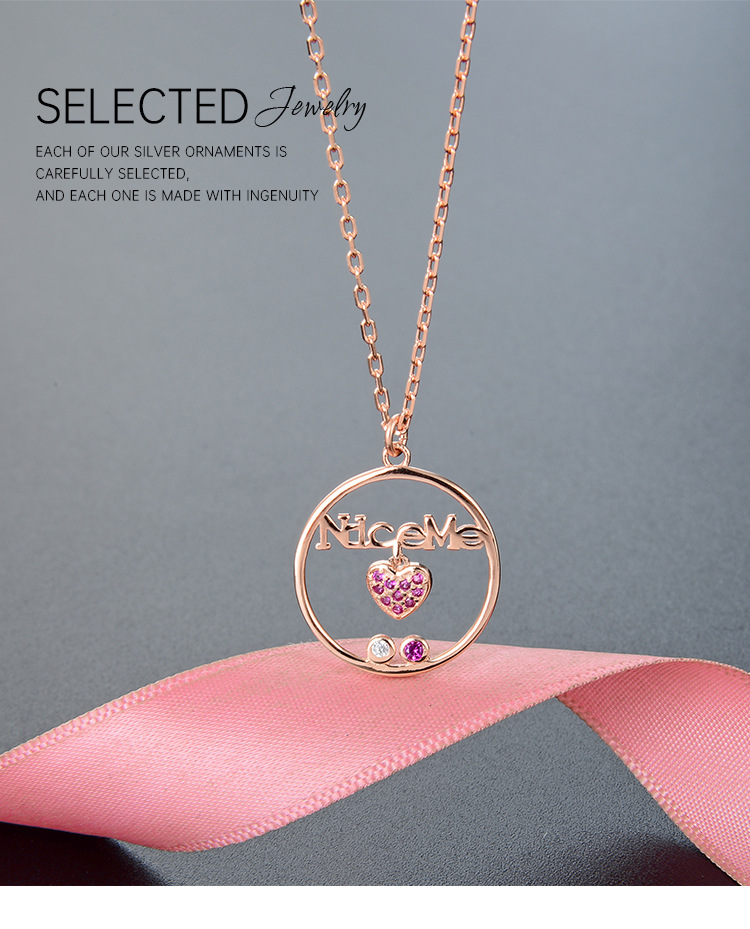 Diamond Love S925 Silver Collar Joyas Estilo japonés y coreano Romántico y dulce Colgante de oro rosa NICEME al por mayor