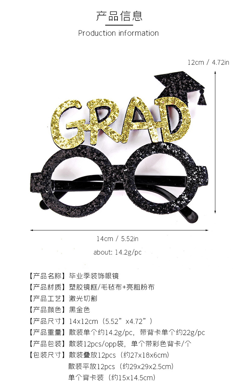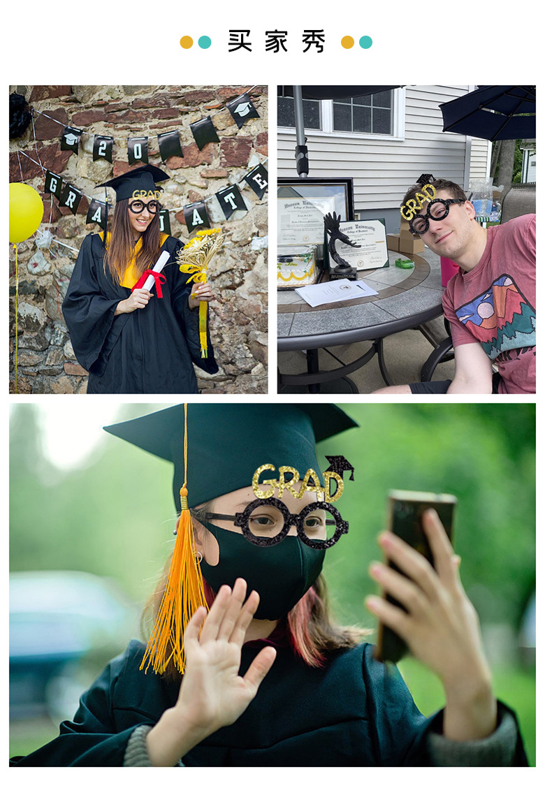 Nueva temporada de graduación de oro negro decoración gafas de fotografía gafas accesorios de fotografía fiesta de graduación regales divertidos