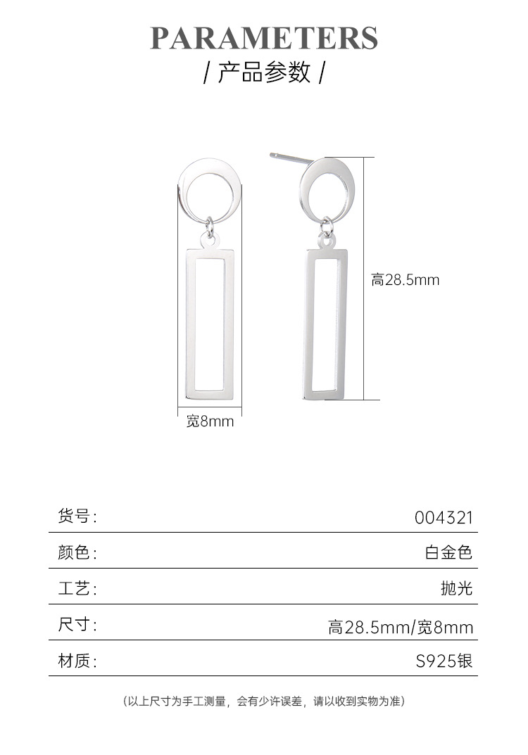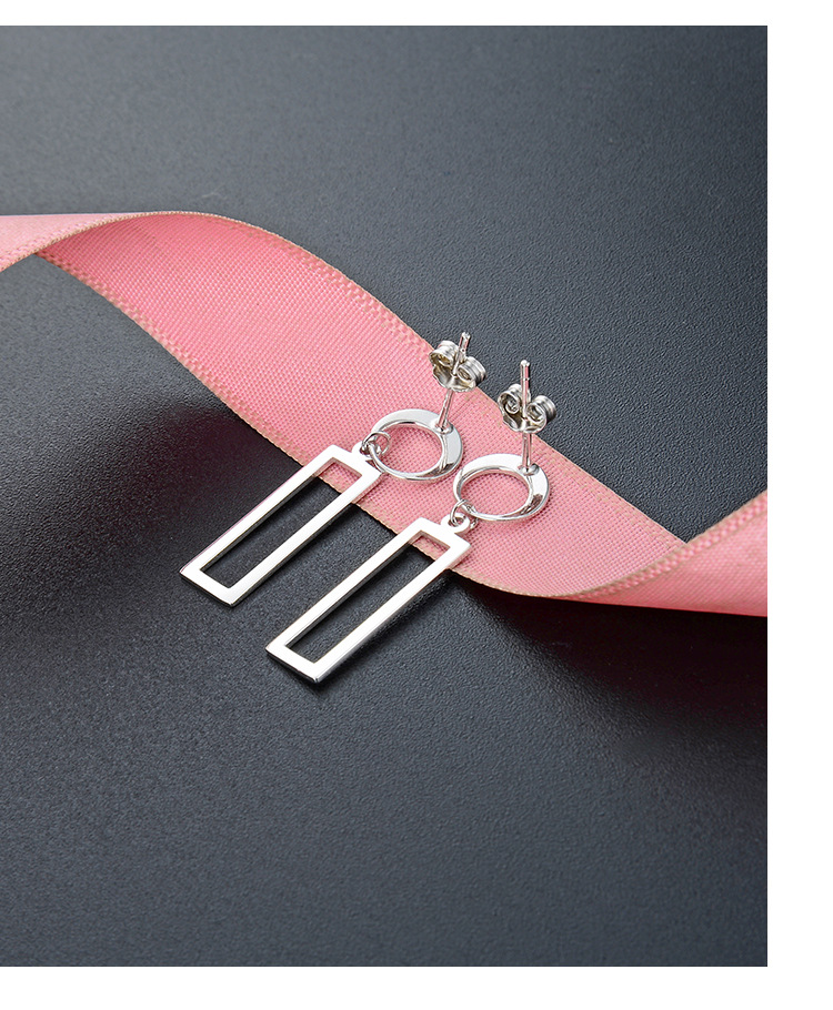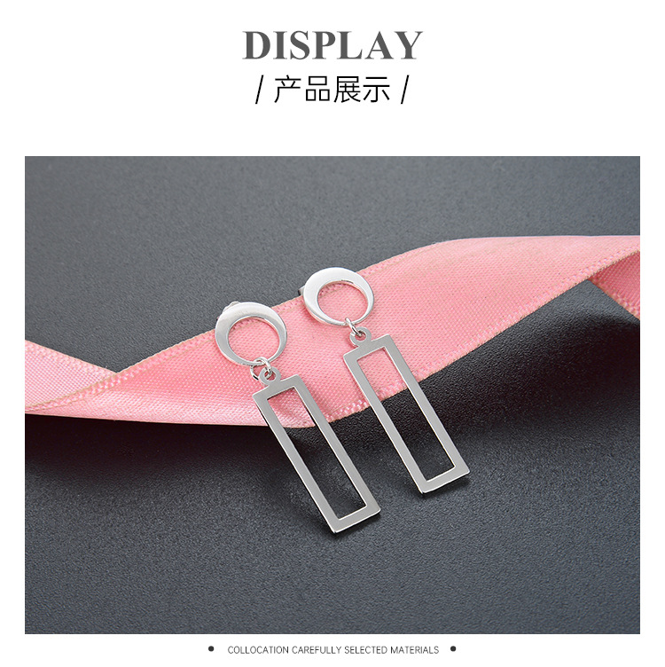 Estilo coreano TikTok mismo pendientes geométricos S925 plata pulido hueco diamante liso pendientes de plata pendientes para las mujeres