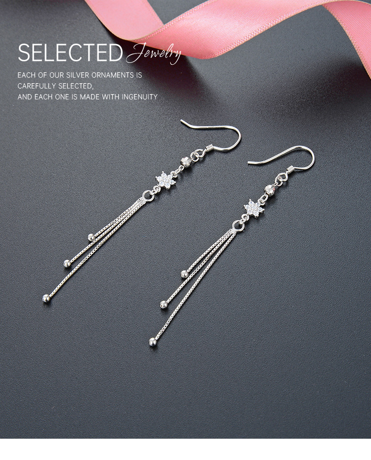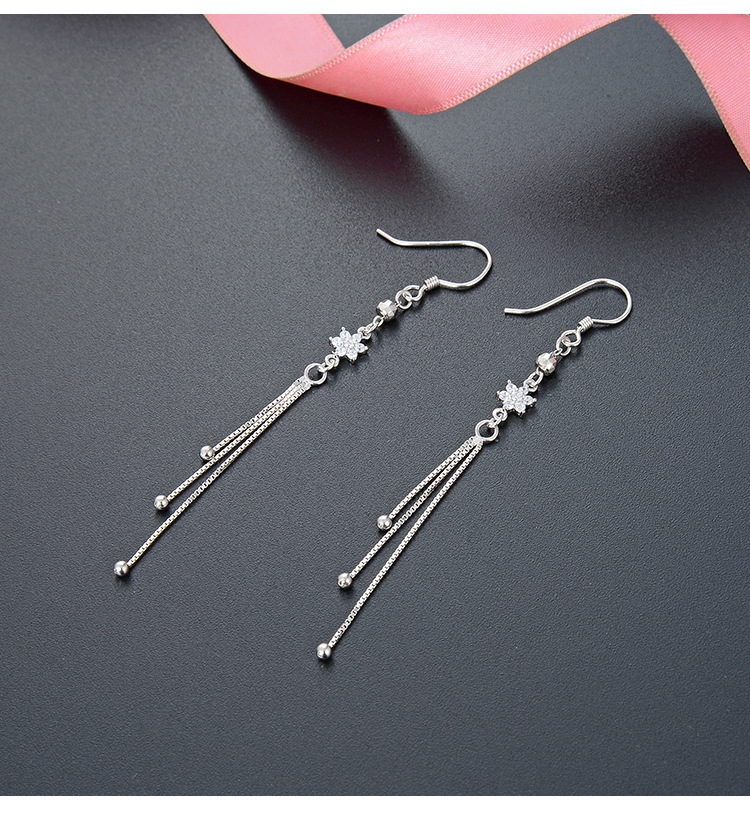 Estilo japonés y coreano moda de hadas pendientes largos de borla S925 plata con incrustaciones de circón pendientes de cuentas redondas geométricas para las mujeres