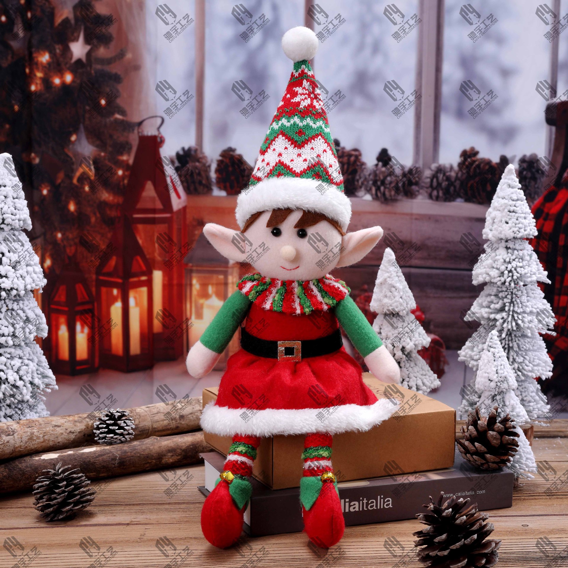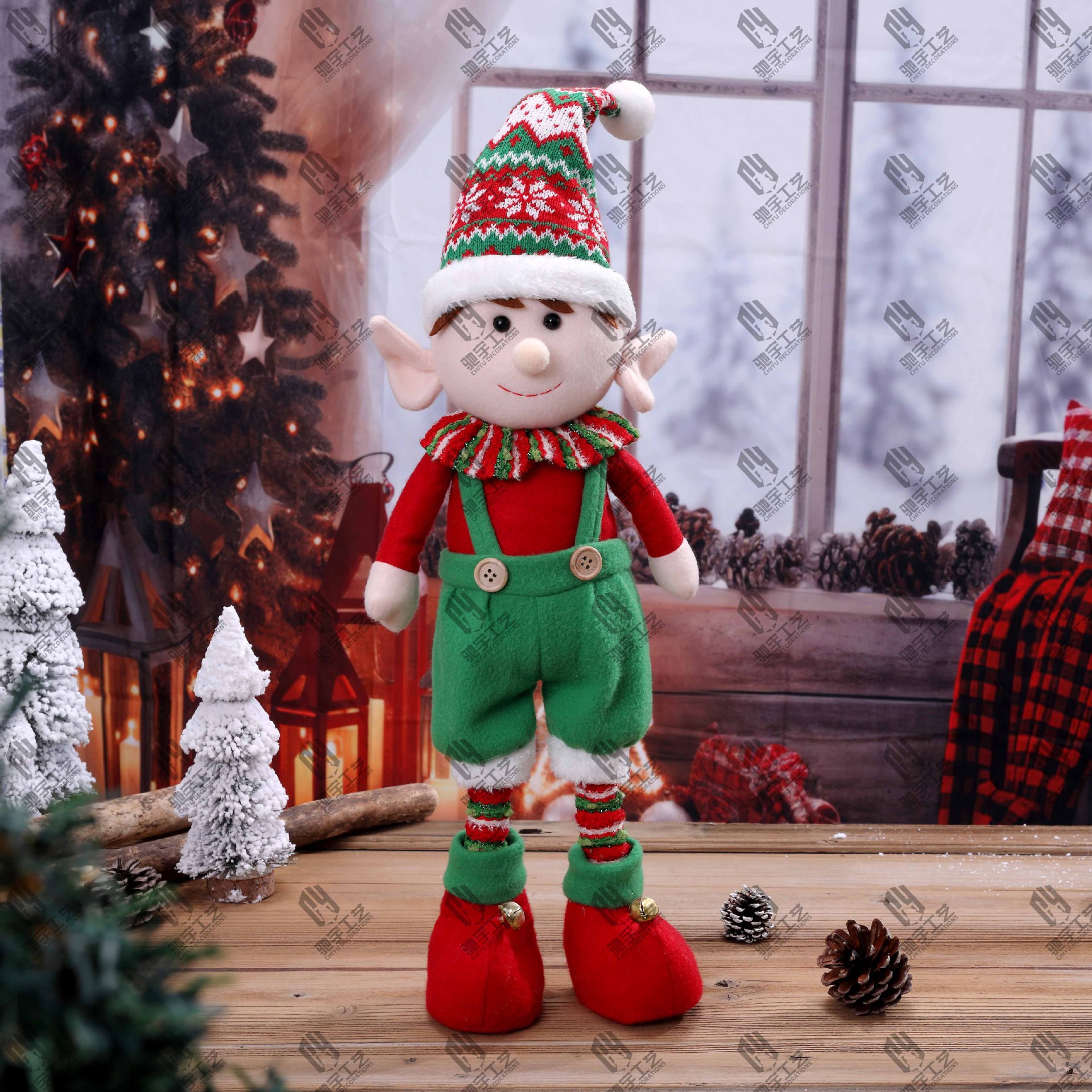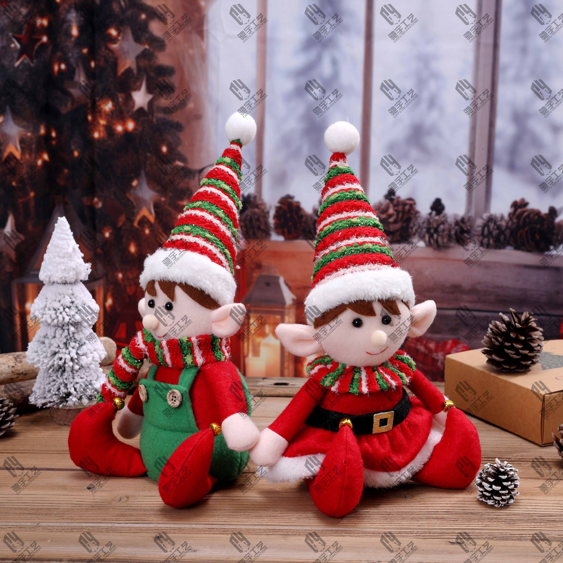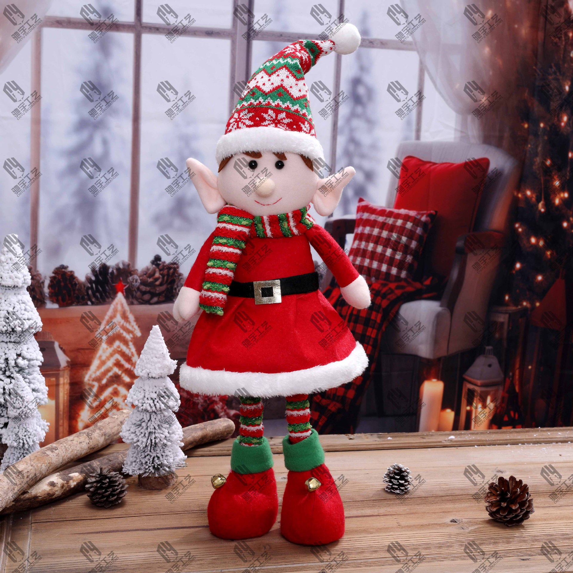Navidad una variedad de tela roja y verde de piernas largas muñecas elfos retráctiles para hombres y mujeres muñecas elfos decoraciones de Navidad
