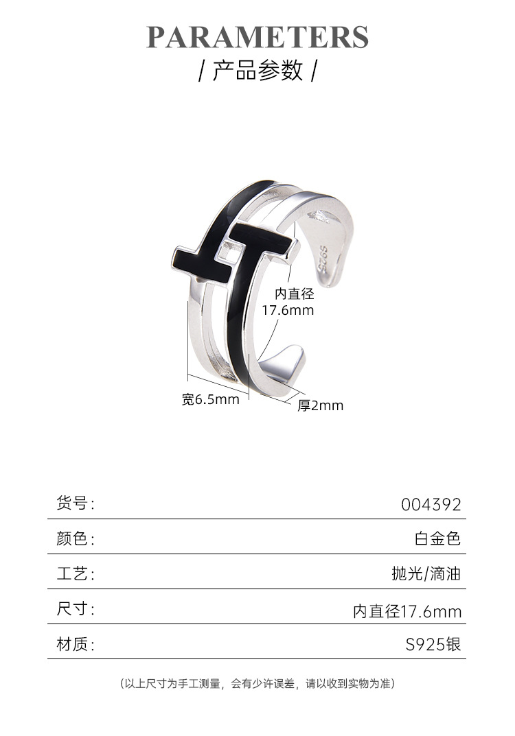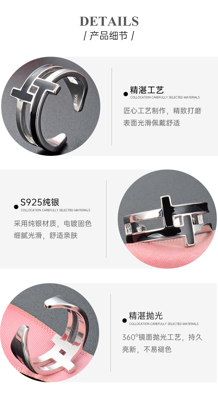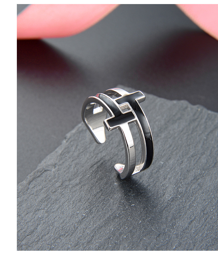 Anillo de dedo índice de anillo de plata s925 de las mujeres geométricas estilo japonés y coreano estilo simple estilo Chanel goteo de aceite anillo abierto al por mayor