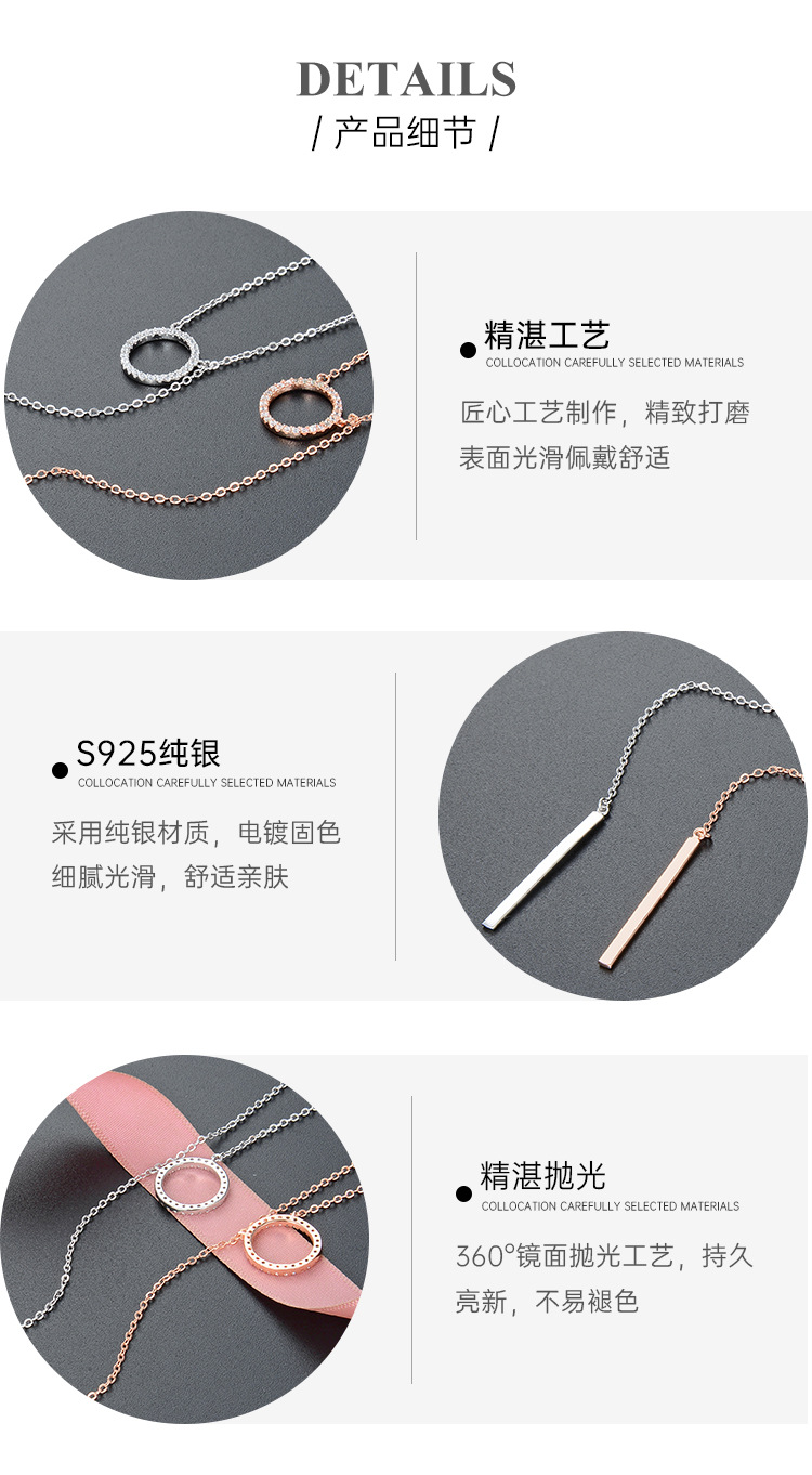 Luz nicho de lujo de alto grado suéter cadena círculo colgante Cadena de clavícula S925 plata esterlina diamante incrustado Collar largo de la borla de las mujeres