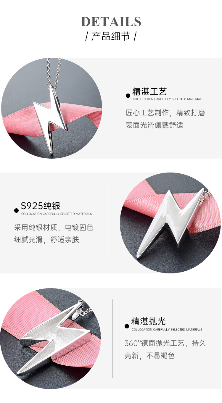 Simple relámpago s925 collar de plata dulce fresco pulido simple collar de plata personalizada cadena de clavícula corta al por mayor