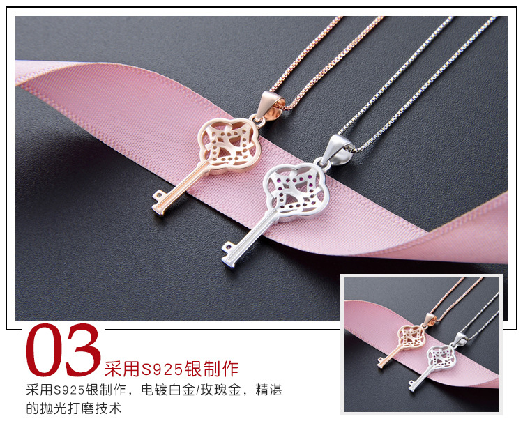 Amor clave s925 Collar de plata colgante elegante Super temperamento de hadas Chanel estilo de joyería transfronteriza Venta caliente