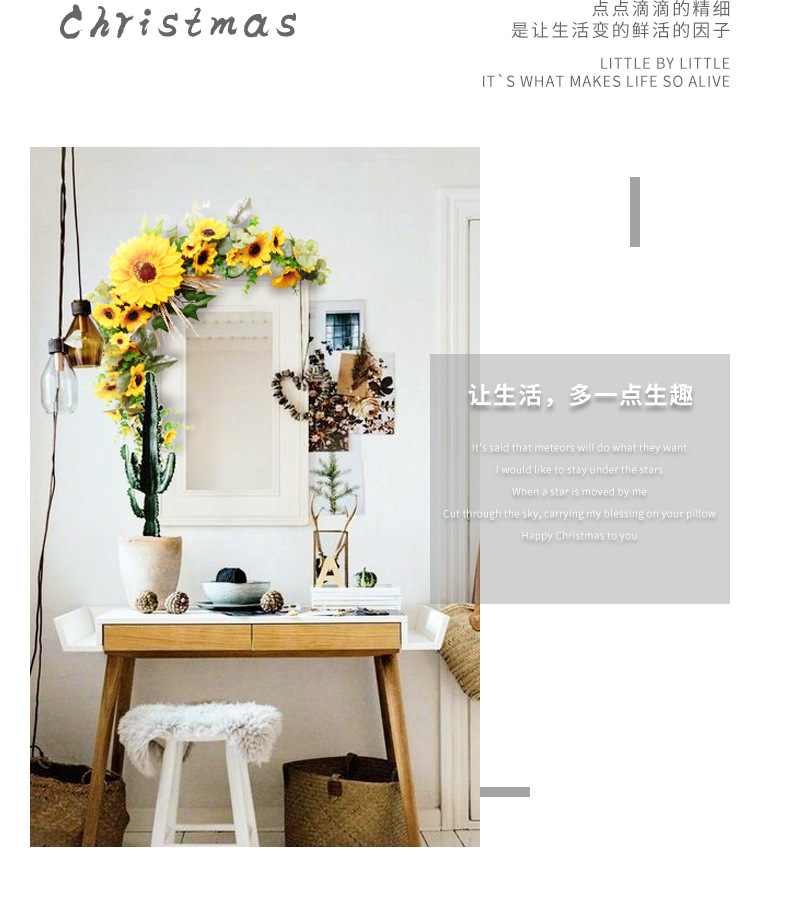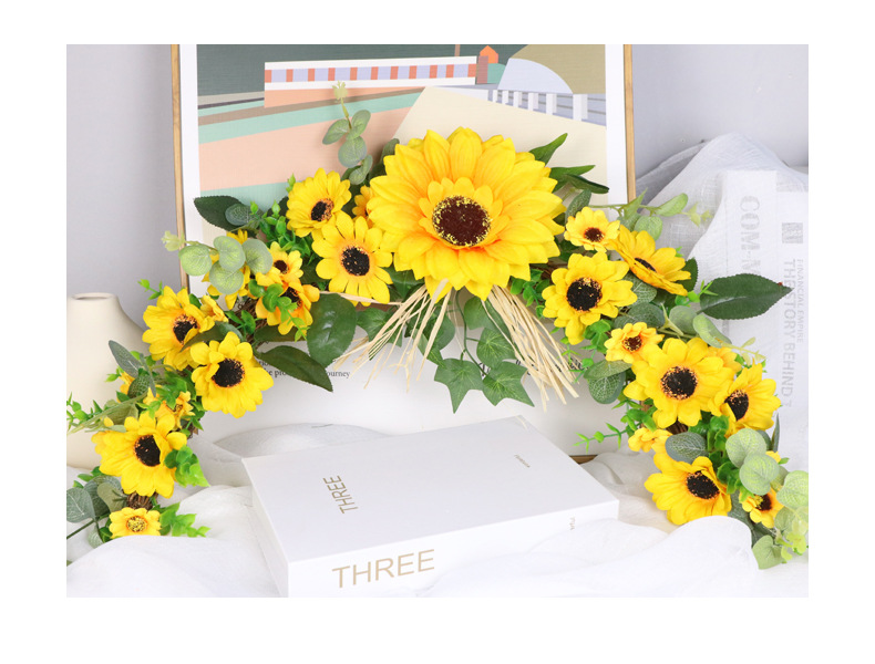 Comercio electrónico transfronterizo ins estilo europeo estilo pastoral decoración del hogar simulación girasol caña cornella colgada en la pared