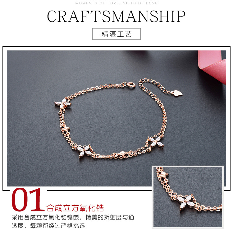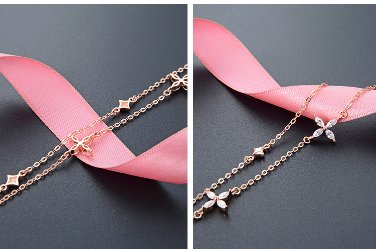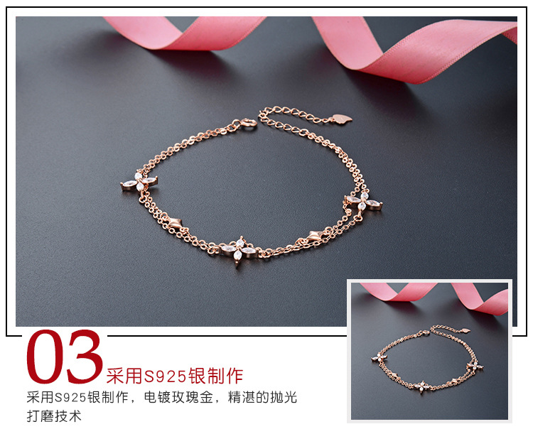 Japonés y coreano estilo Super Fairy moda dulce ZIRCON joyería S925 plata esterlina trébol pulsera de las mujeres temperamento joyería