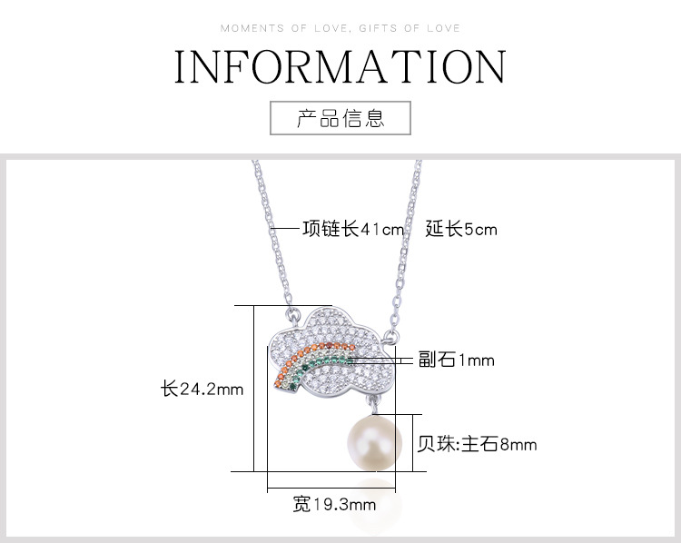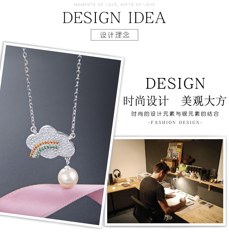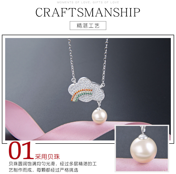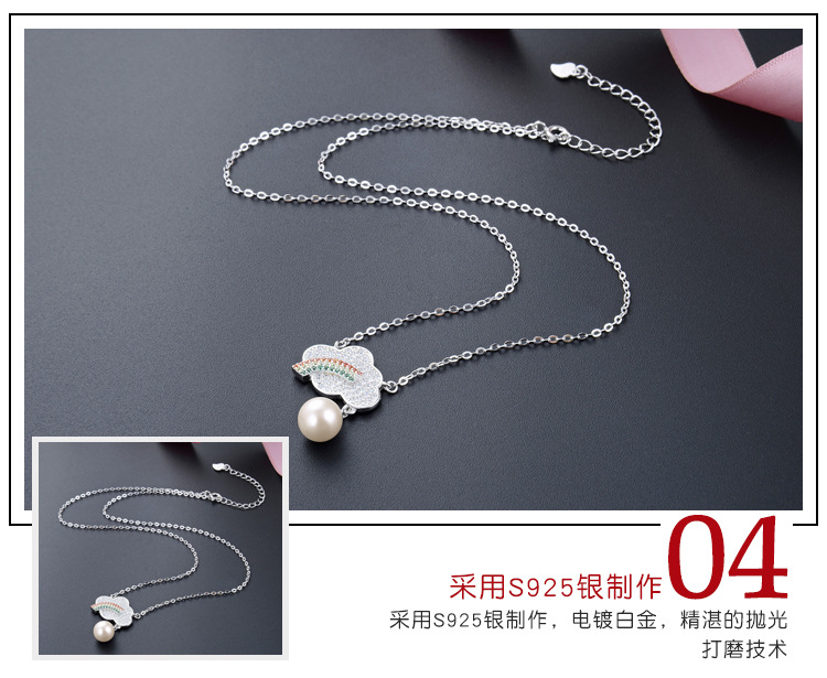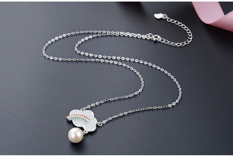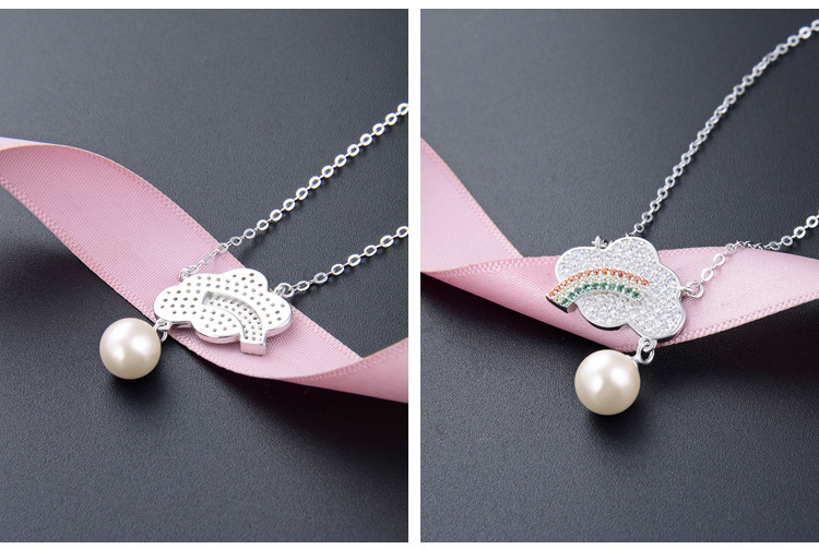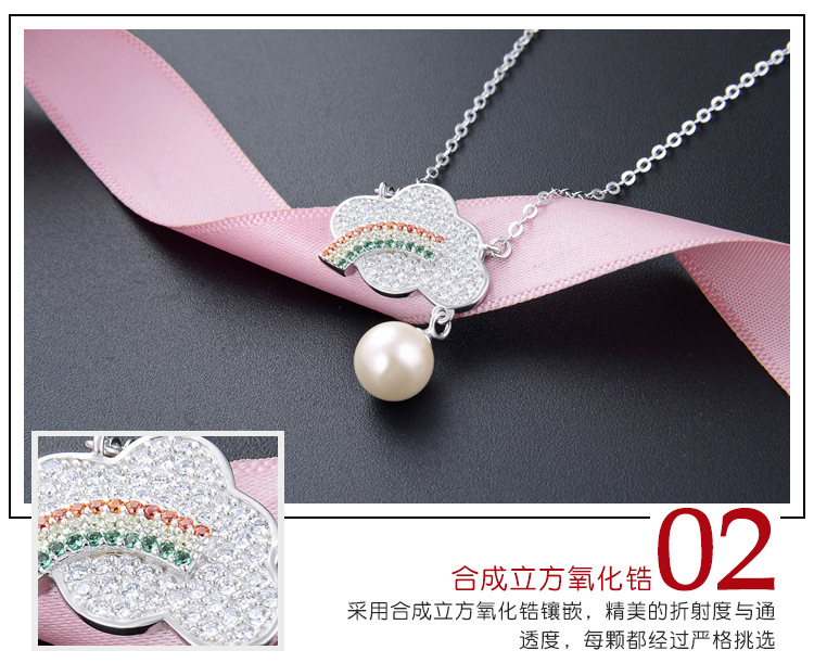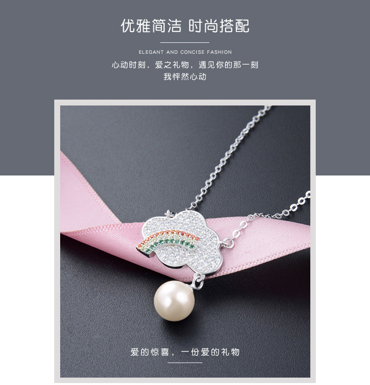 S925 plata diamante del arco iris collar de perlas de las mujeres de estilo coreano dulce fresco joyería de moda de color colgante de diamantes cadena de la clavícula