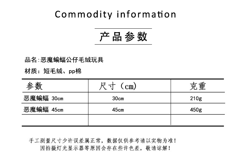 | Colores | Murciélago demonio púrpura,Murciélago demonio negro,Murciélago Diablo Rojo,Murciélago diablo rosa |