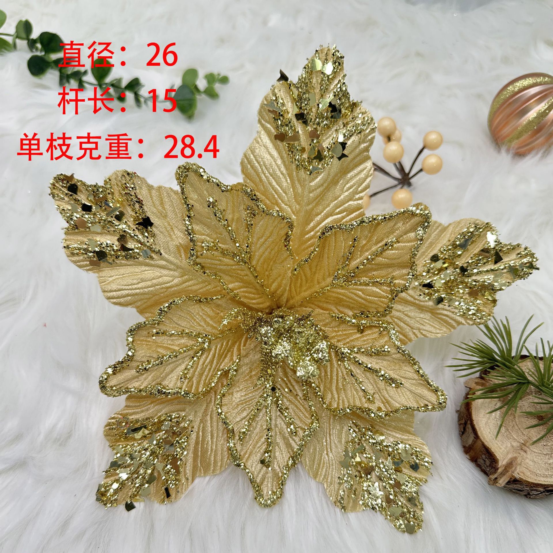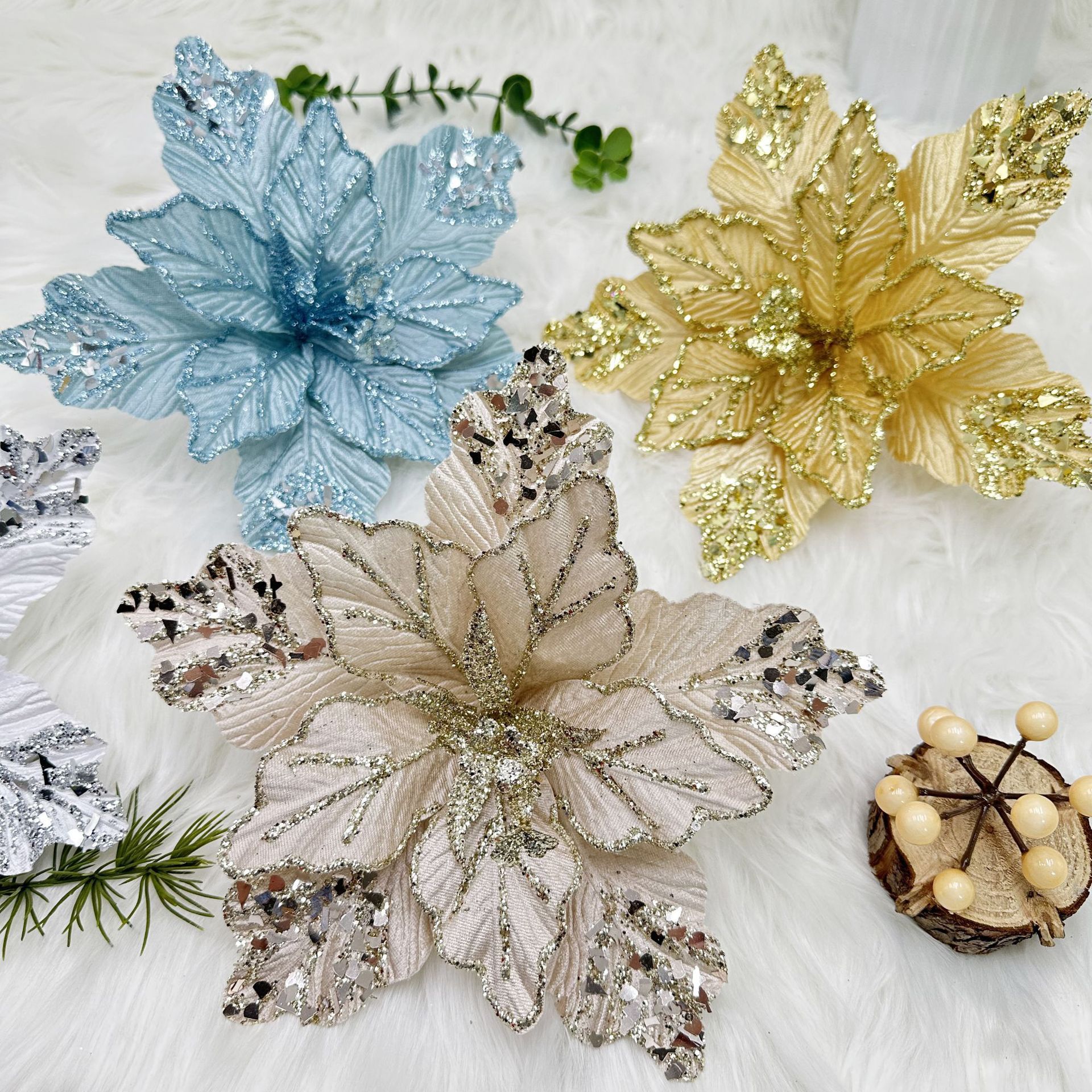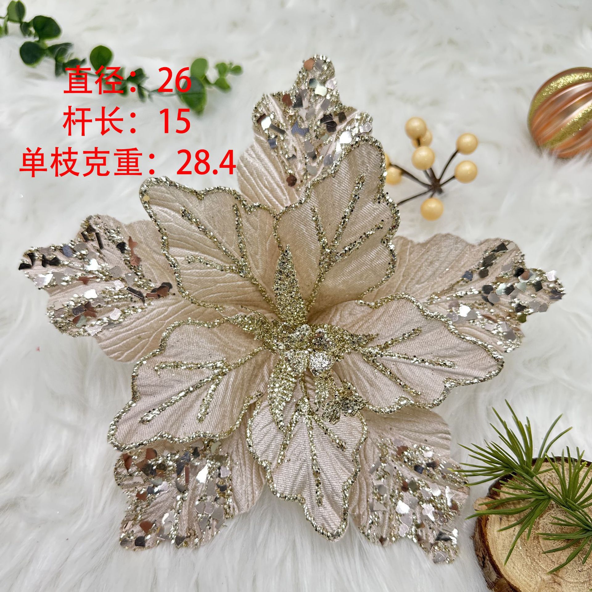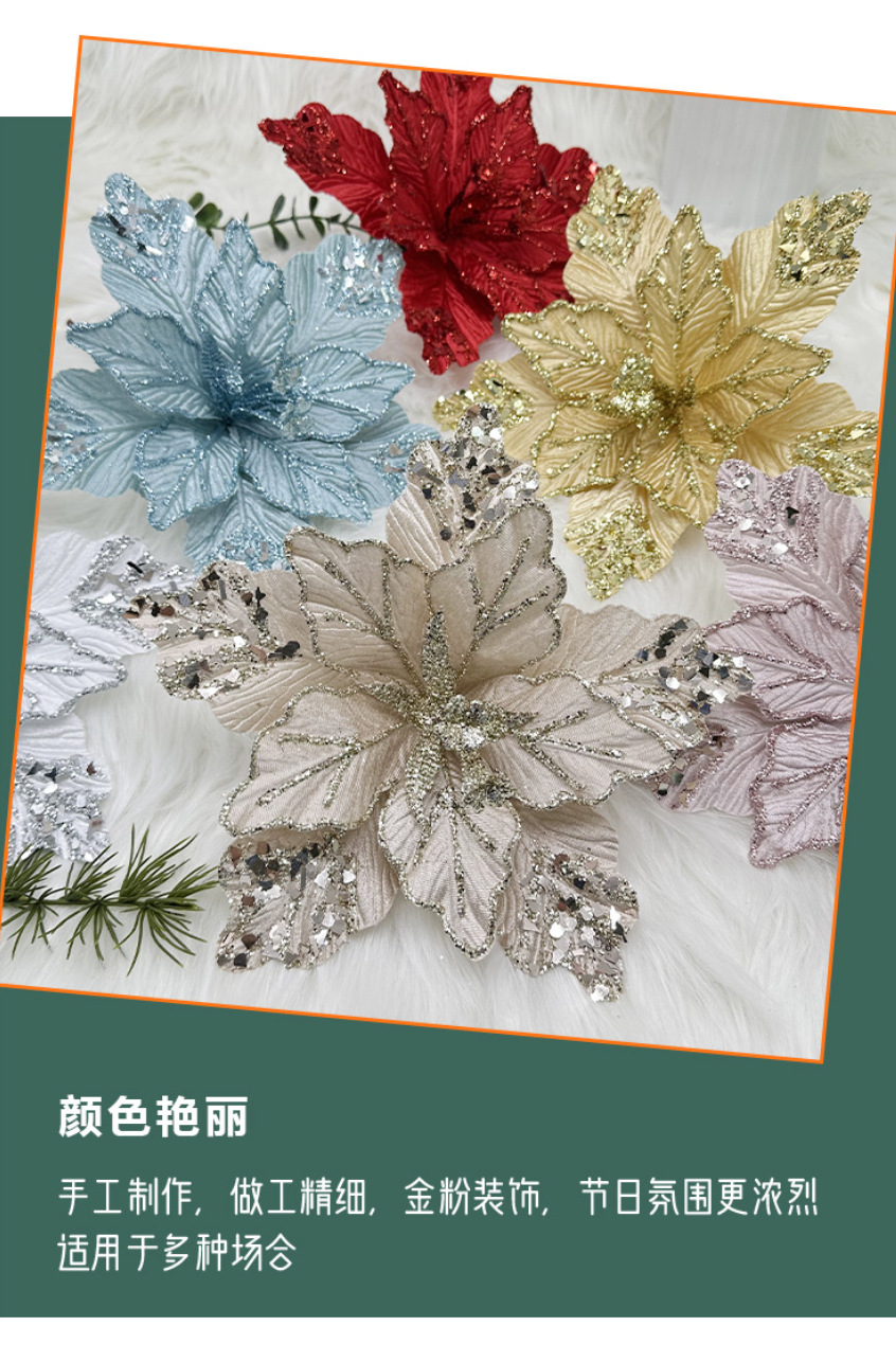 Decoraciones de simulación de Navidad Venta al por mayor transfronteriza Arreglos florales de tela Decoración Decoración Malla Lentejuelas Flor de Navidad