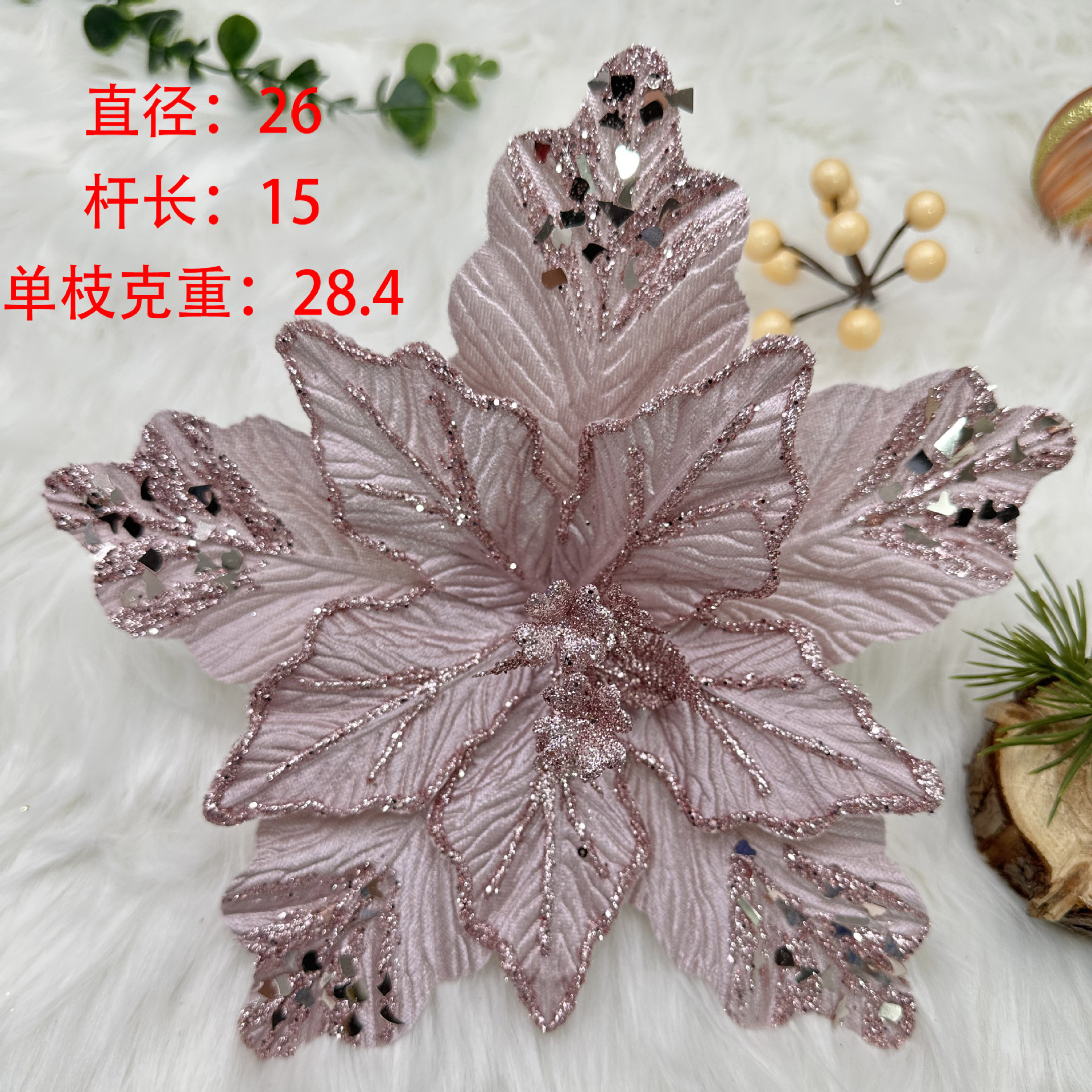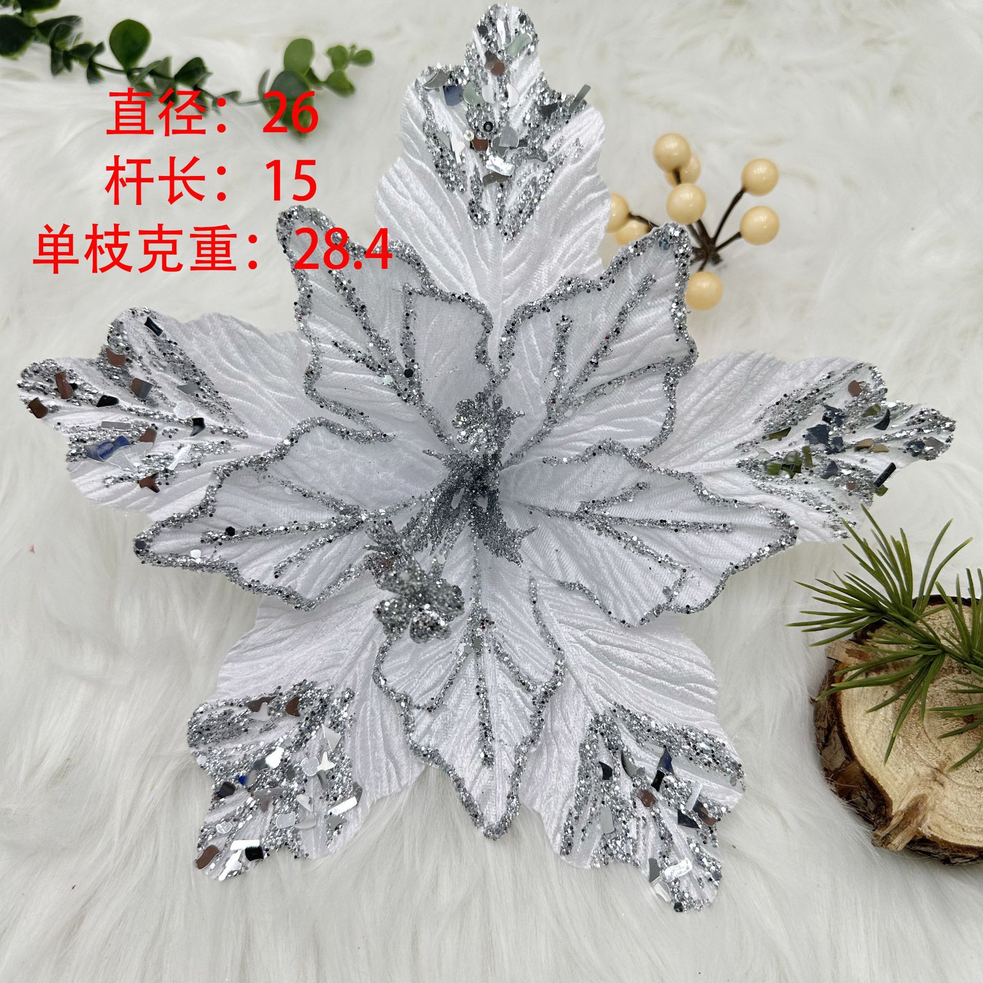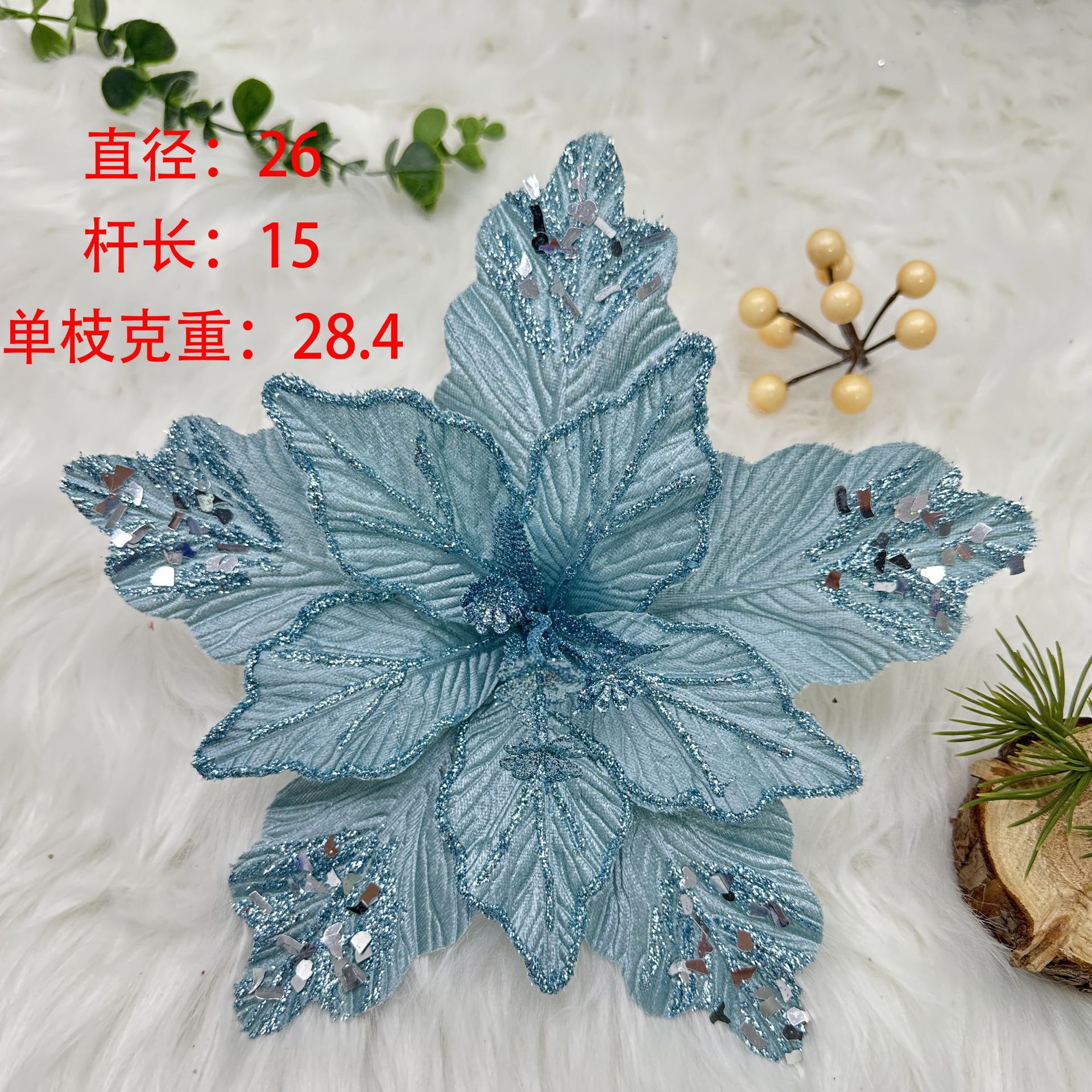 Decoraciones de simulación de Navidad Venta al por mayor transfronteriza Arreglos florales de tela Decoración Decoración Malla Lentejuelas Flor de Navidad