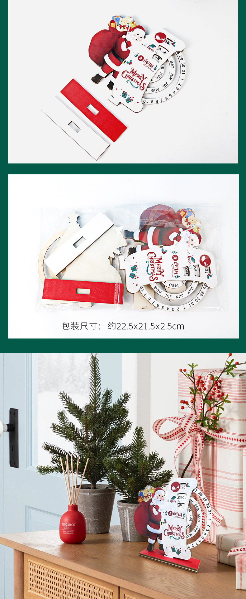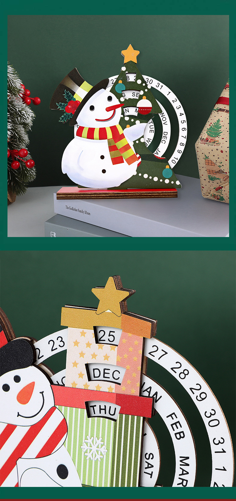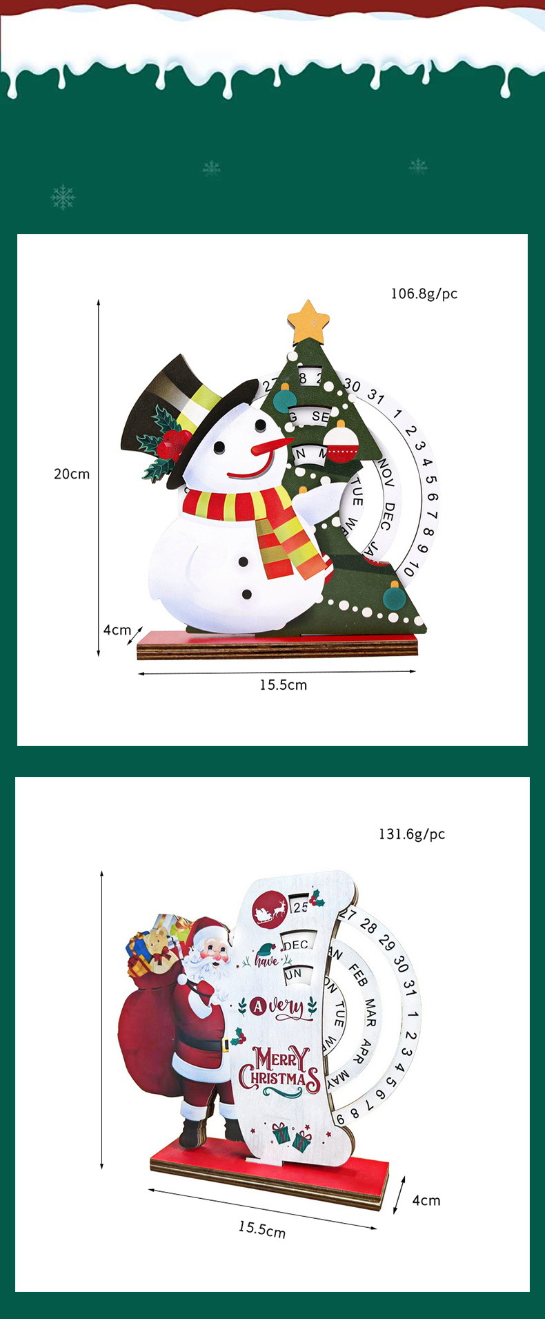 Decoraciones navideñas Cuenta atrás Manual Calendario Decoración Adornos de madera Santa Muñeco de nieve Decoración de mesa redonda