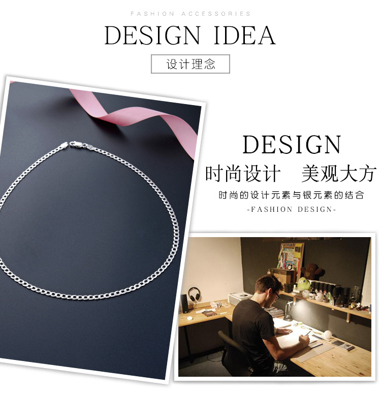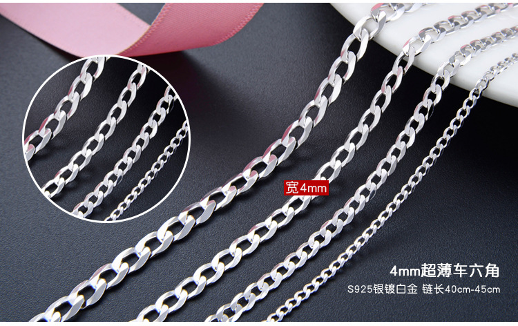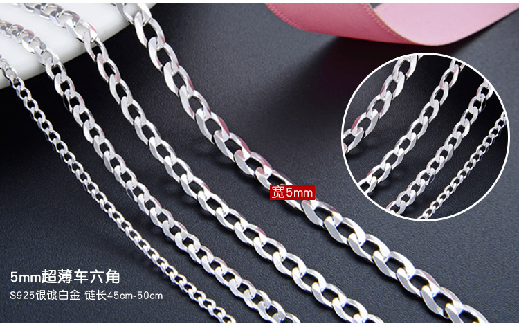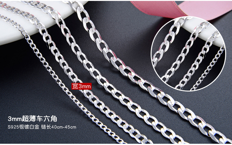 Europa y América hip hop joyería Hipster S925 collar de plata esterlina de los hombres y las mujeres de la personalidad simple de la moda suéter largo cadena de la clavícula cadena