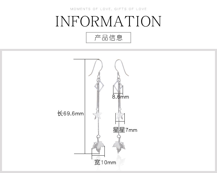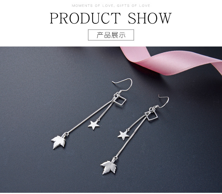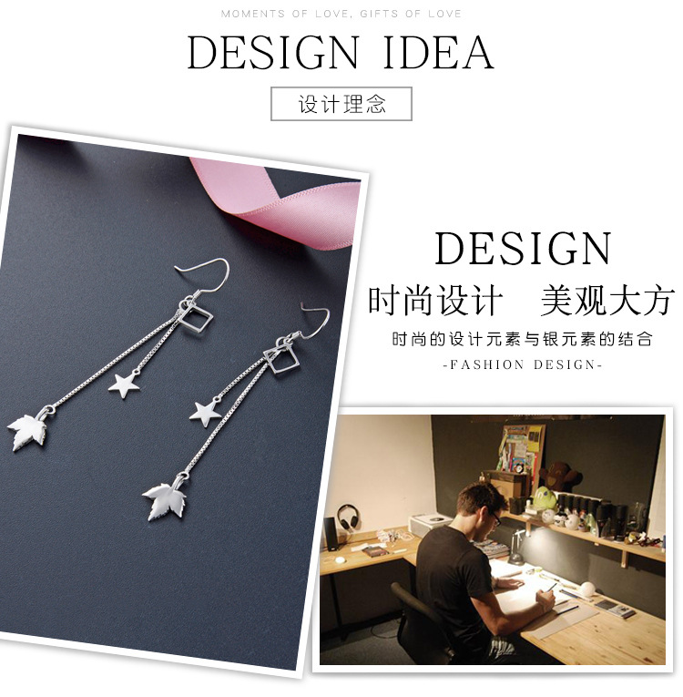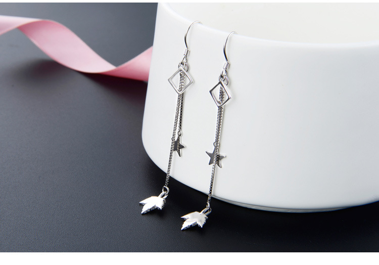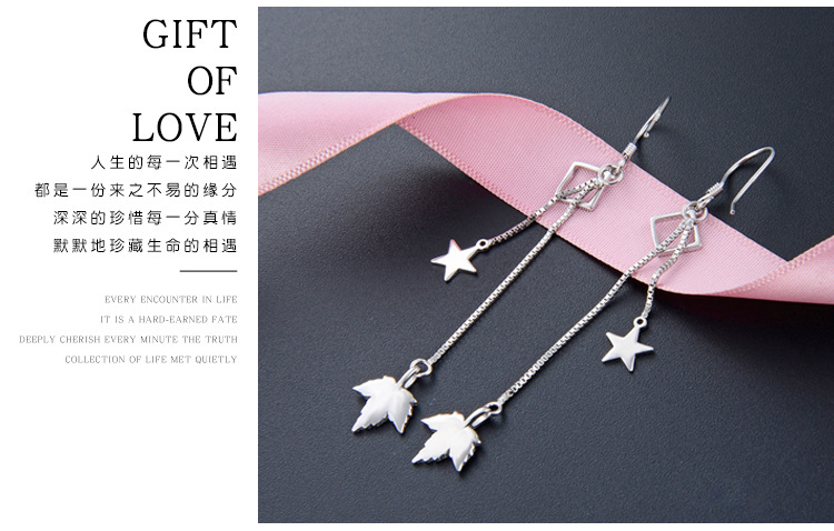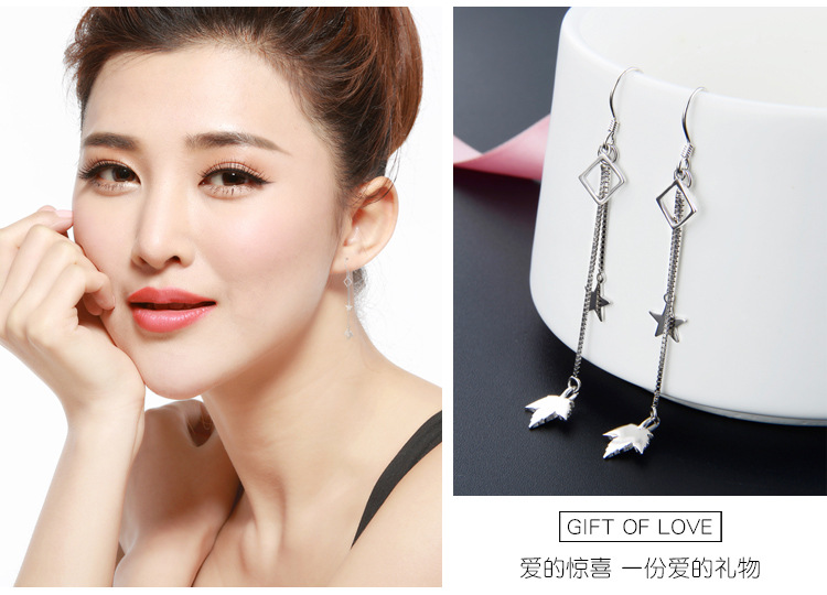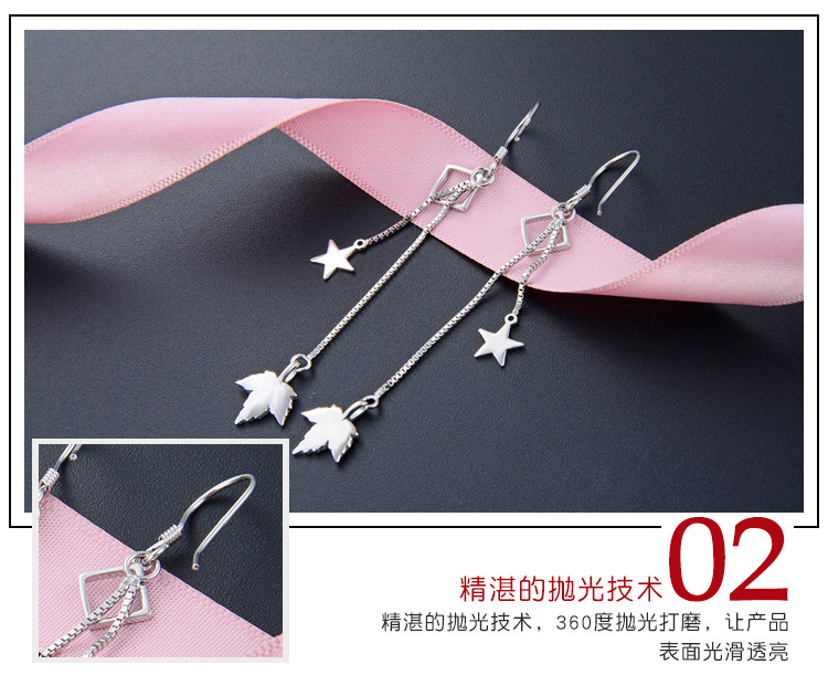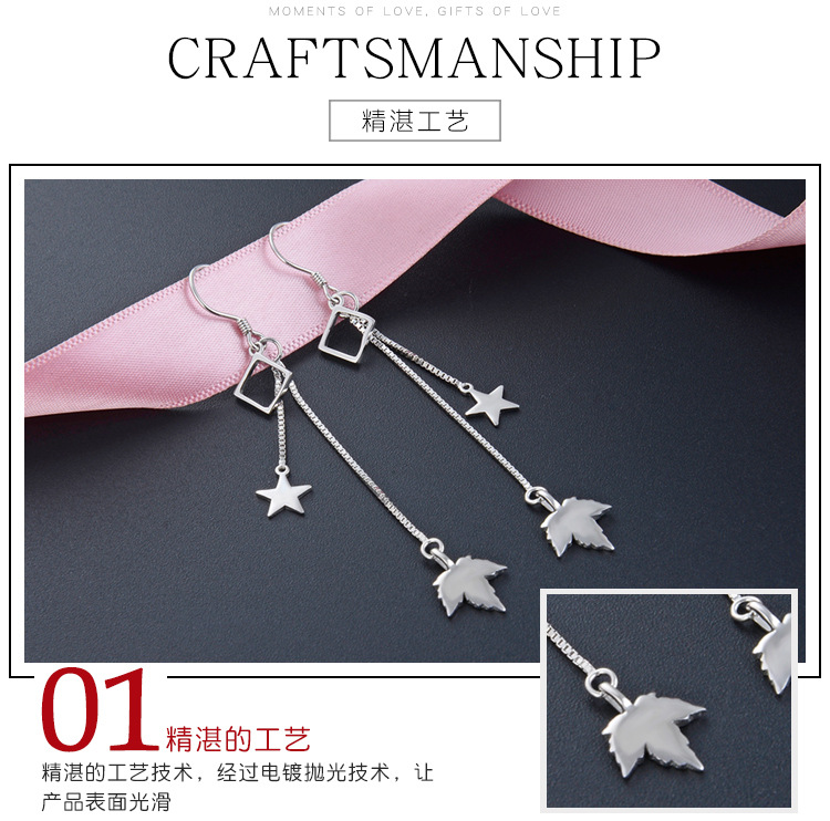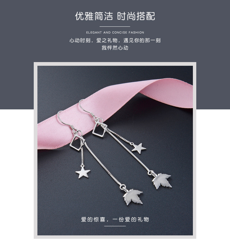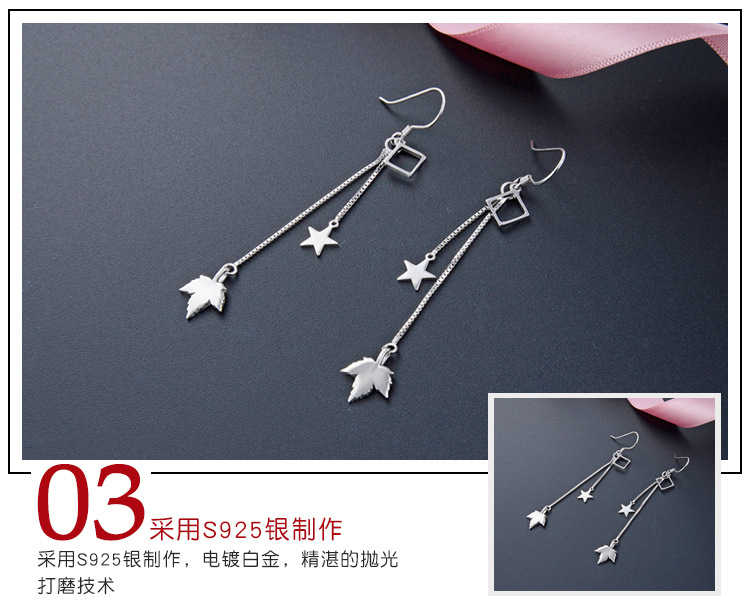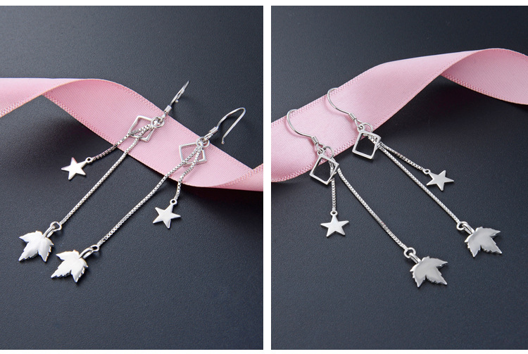 Pendientes de borla de plata esterlina s925 para las mujeres Corea del Sur elegante estrella hoja de arce pendientes largos diseño de moda sentido nicho pendientes