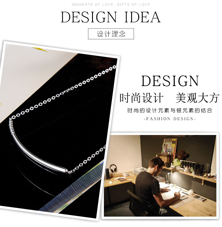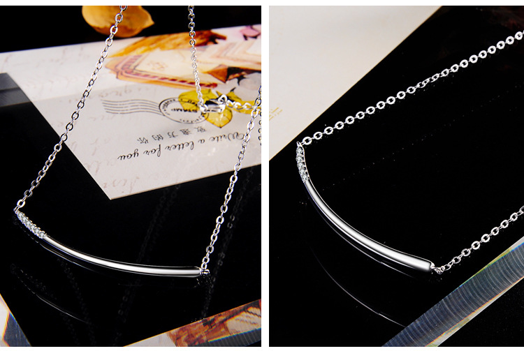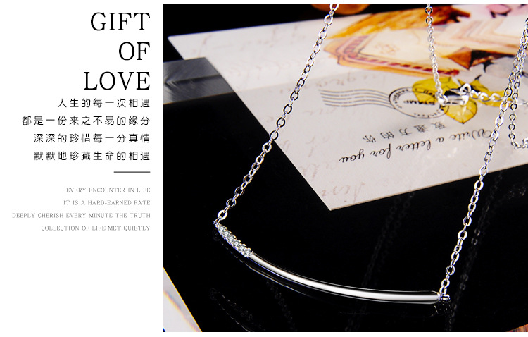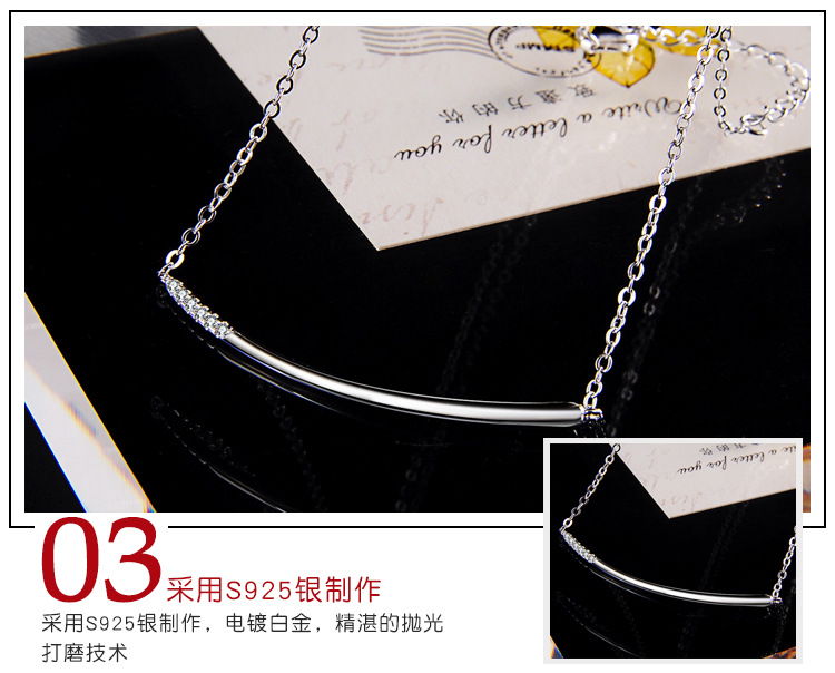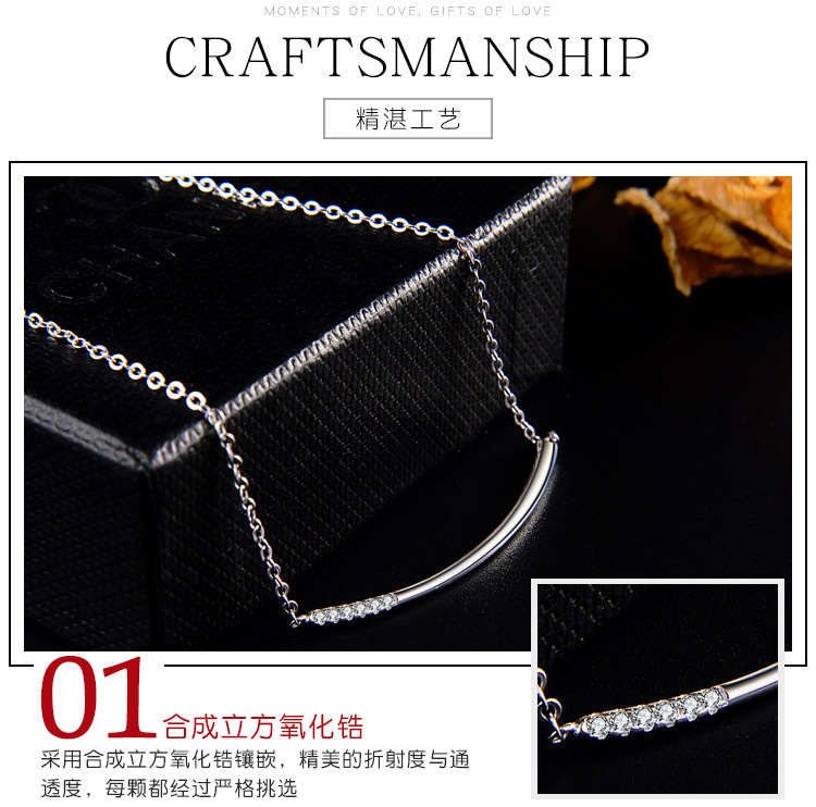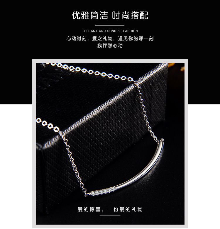 S925 Collar de plata simple moda estilo japonés y coreano codo con incrustaciones de circón cadena Cadena de clavícula de las mujeres collar de cara sonriente