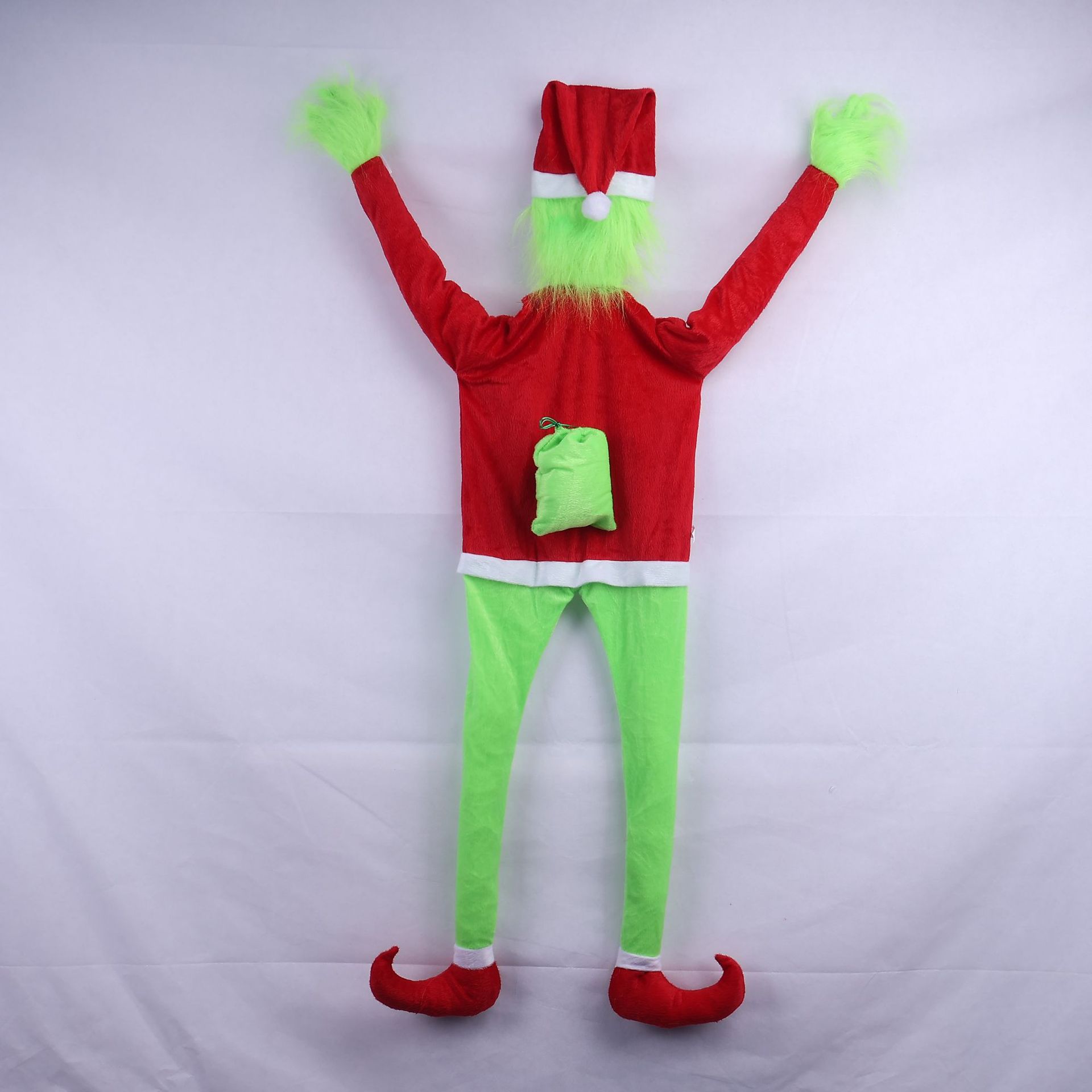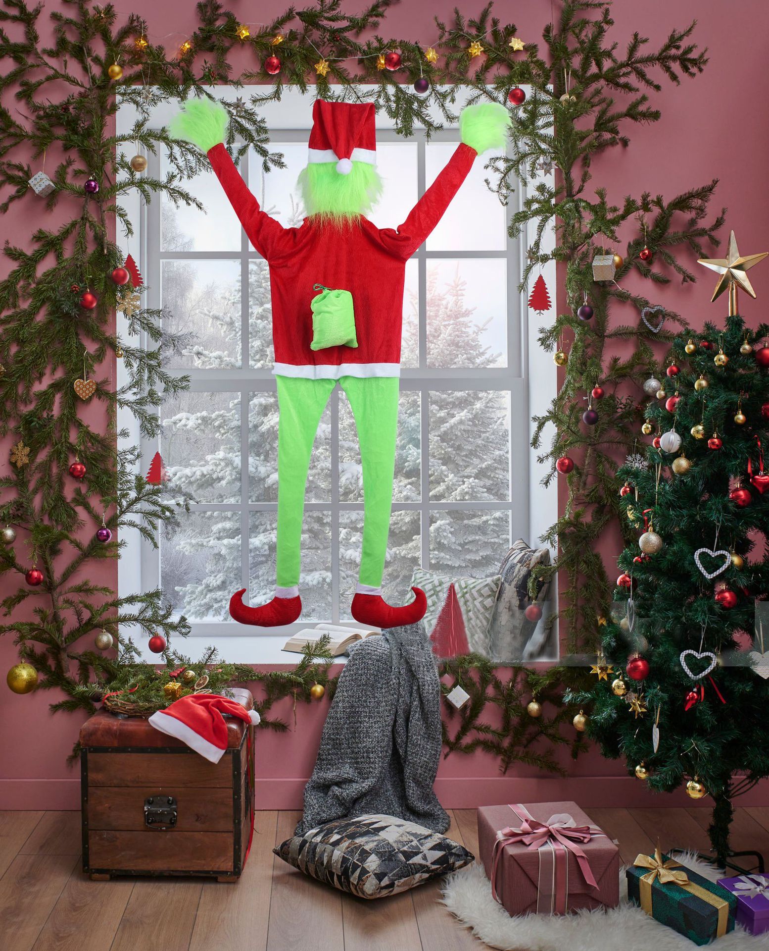 Decoración Navideña de Terciopelo con Diseño de Grinch Trepador de Pared, Disfraz de Grinch Verde Peludo, Adornos Navideños