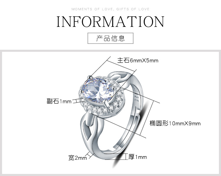 Japonés y coreano de moda elegante anillo femenino S925 plata diamante incrustado anillo abierto simple anillo de dedo índice anillo de diamante de simulación