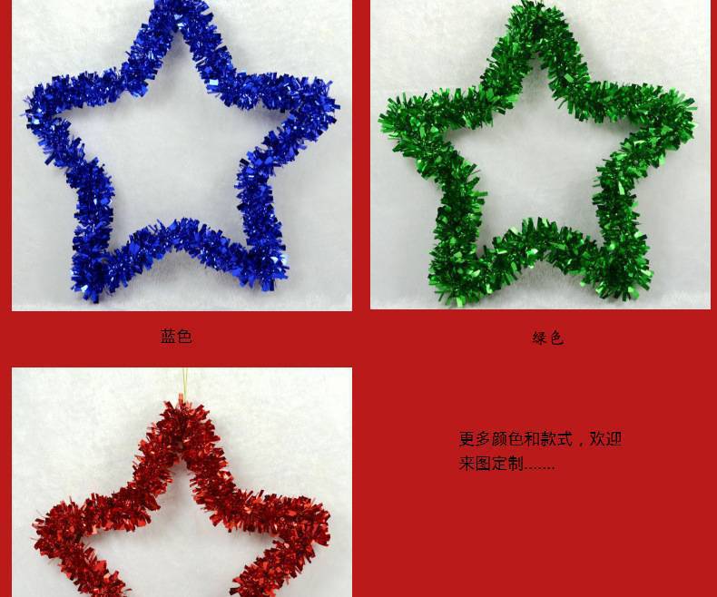Navidad estrella de cinco puntas tira de color guirnalda de 35cm engrosada corona de estrella de cinco puntas colgante de decoración del hogar