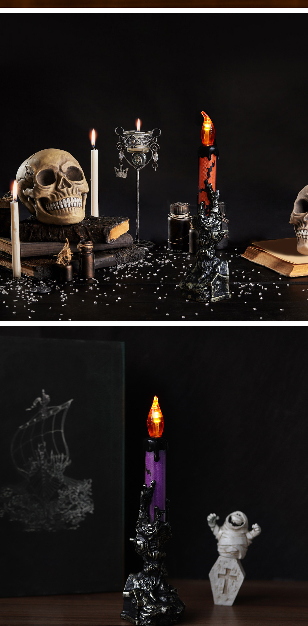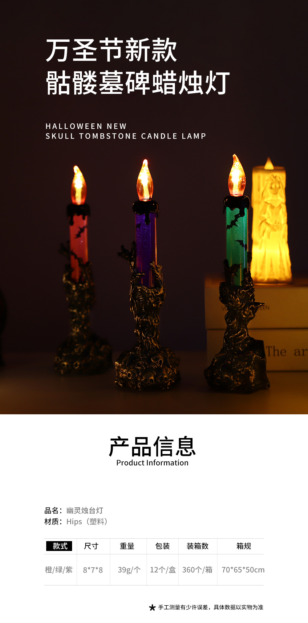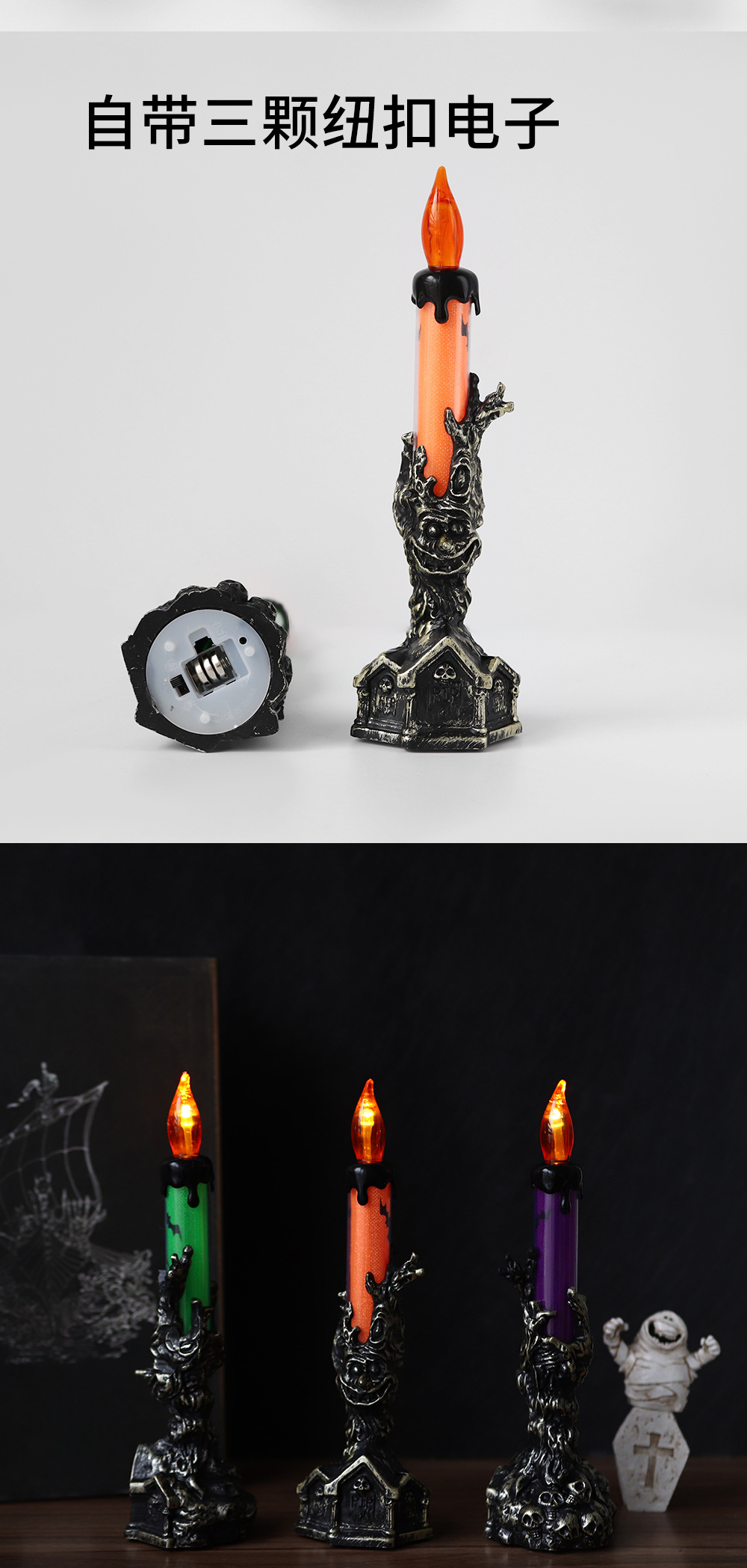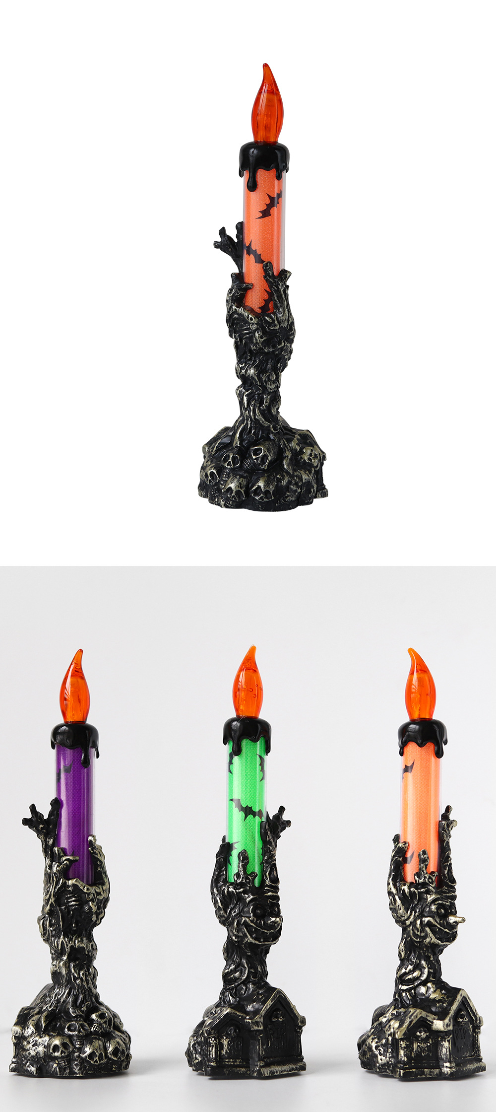 | Color | Lápida naranja vela de mano fantasma, lápida Verde vela de mano fantasma, lápida púrpura vela de mano fantasma |