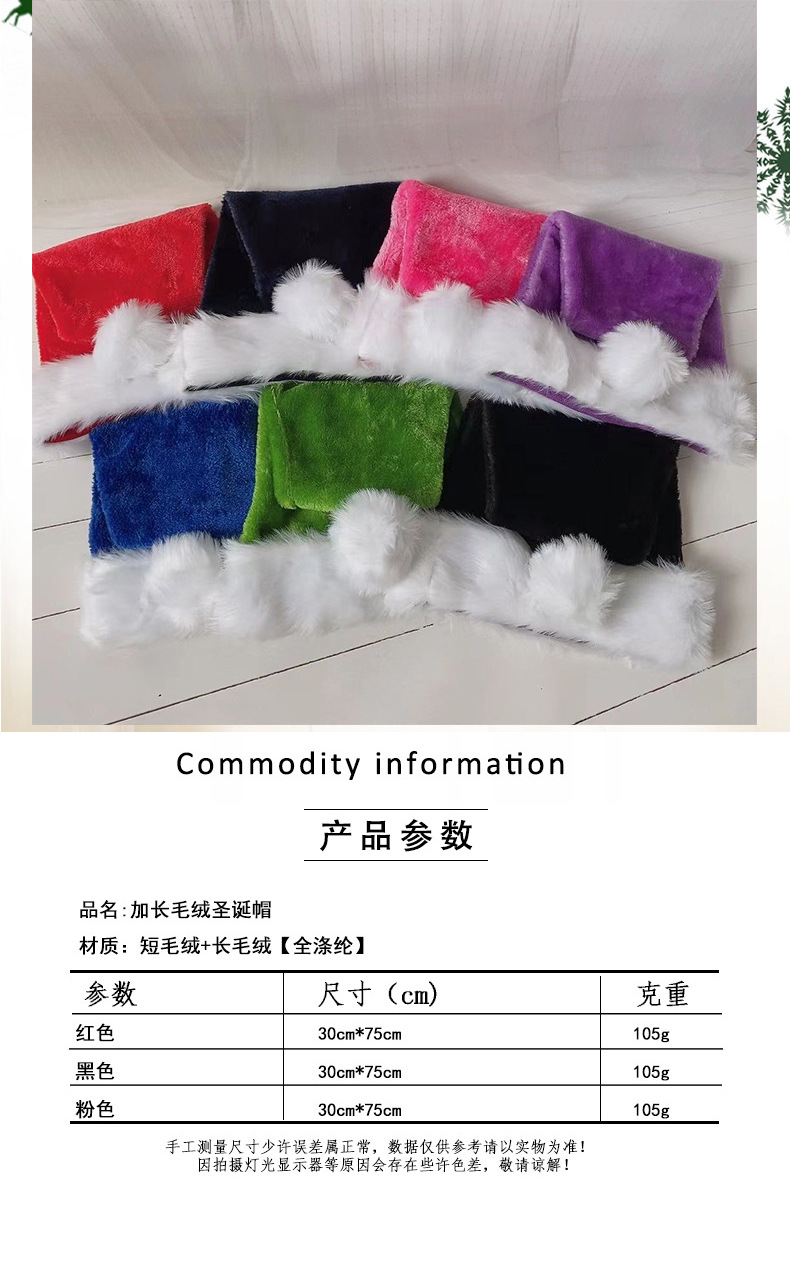 Sombrero de Navidad de felpa alargada de 75cm Sombrero de felpa para adultos Sombrero de Navidad opcional multicolor Sombrero de Navidad largo personalizado