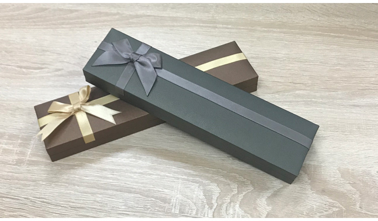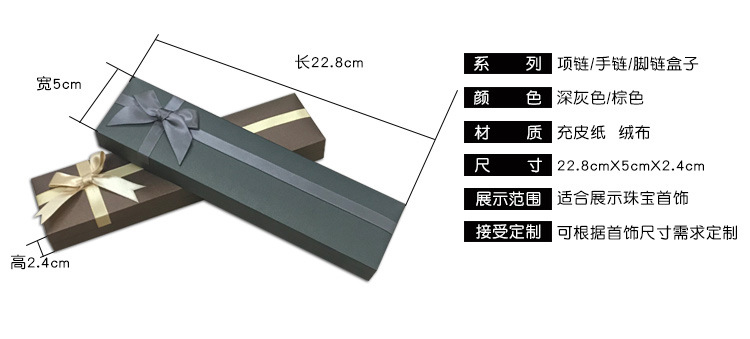 Cuero rectangular larga franela de papel collar pulsera tobillera caja de regalo joyería arco caja de embalaje