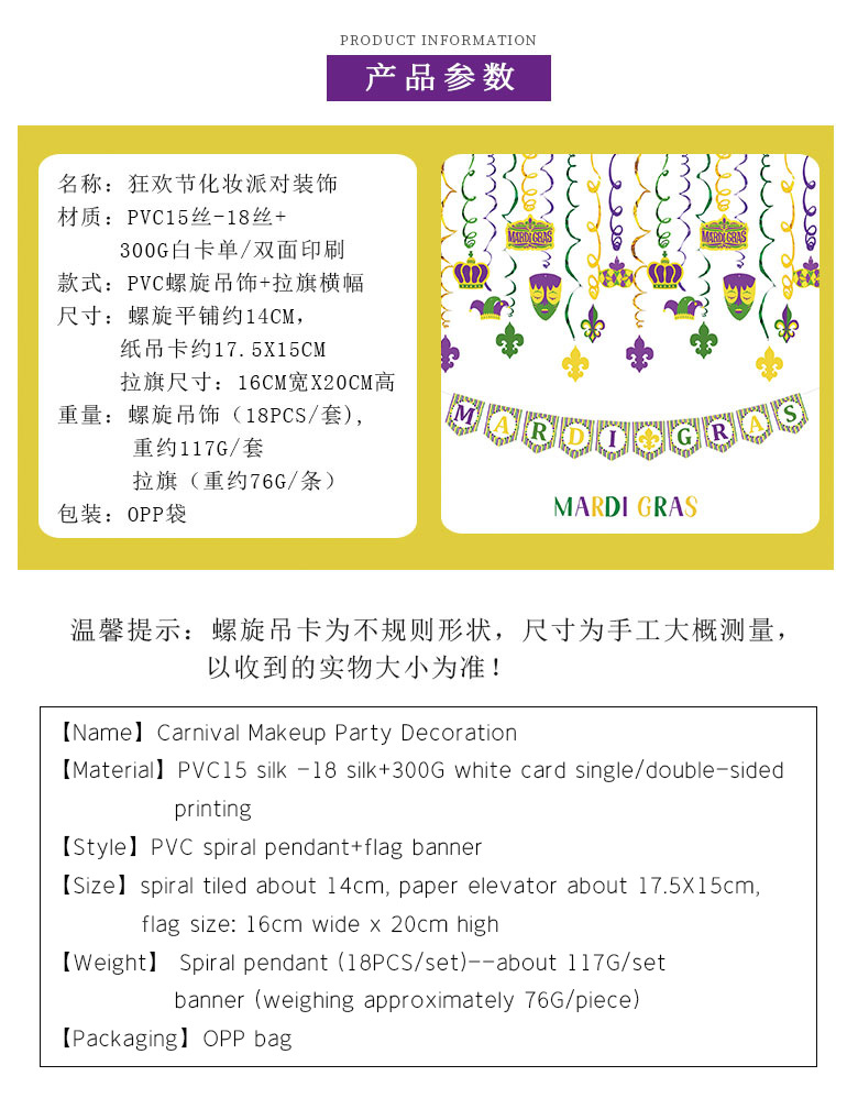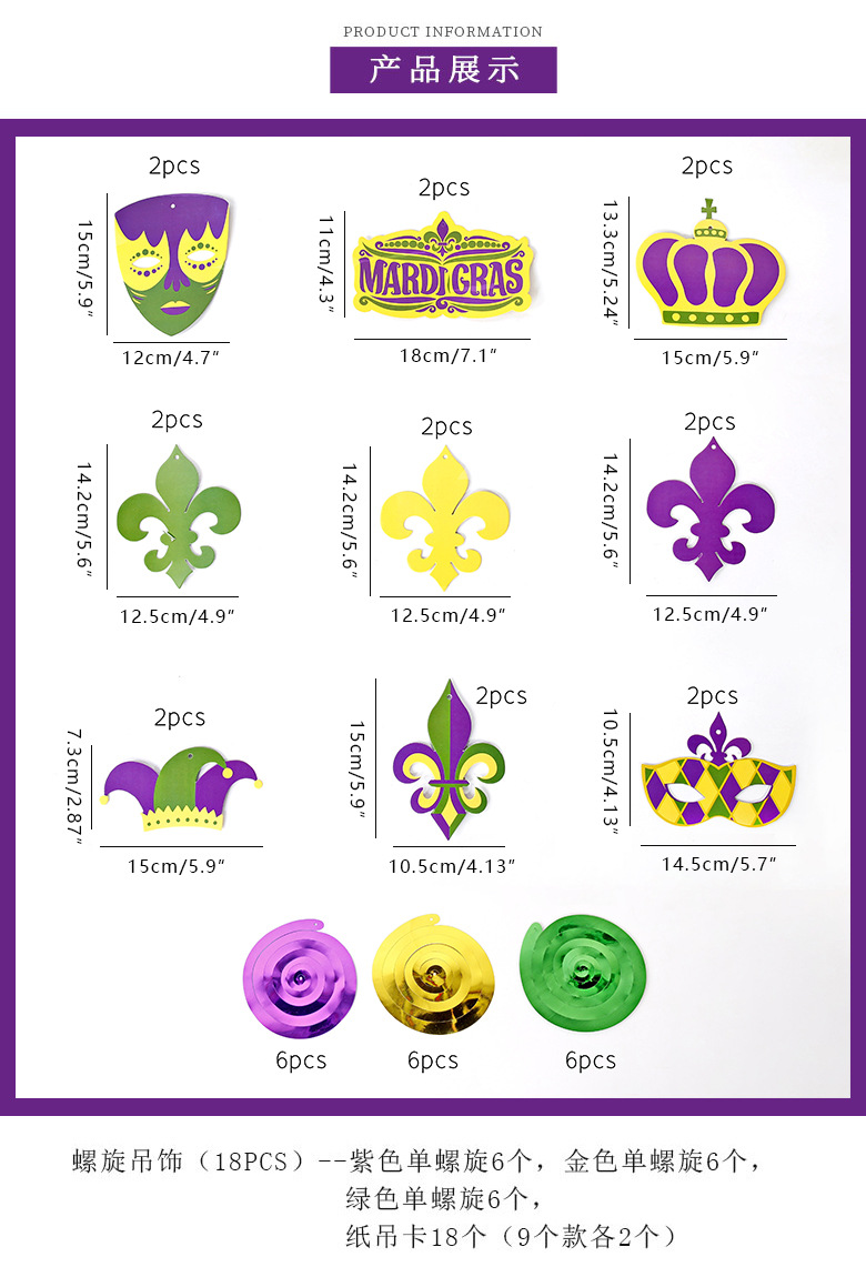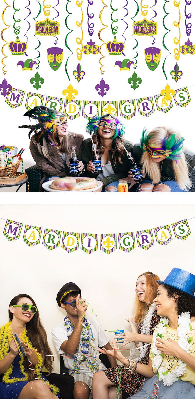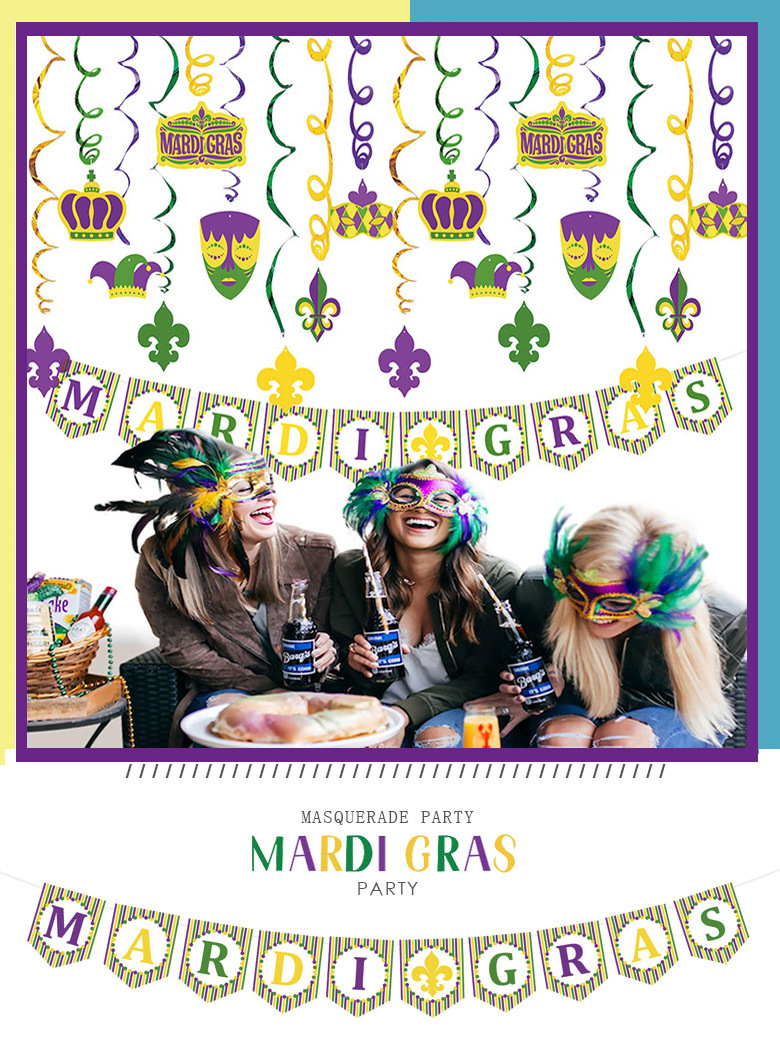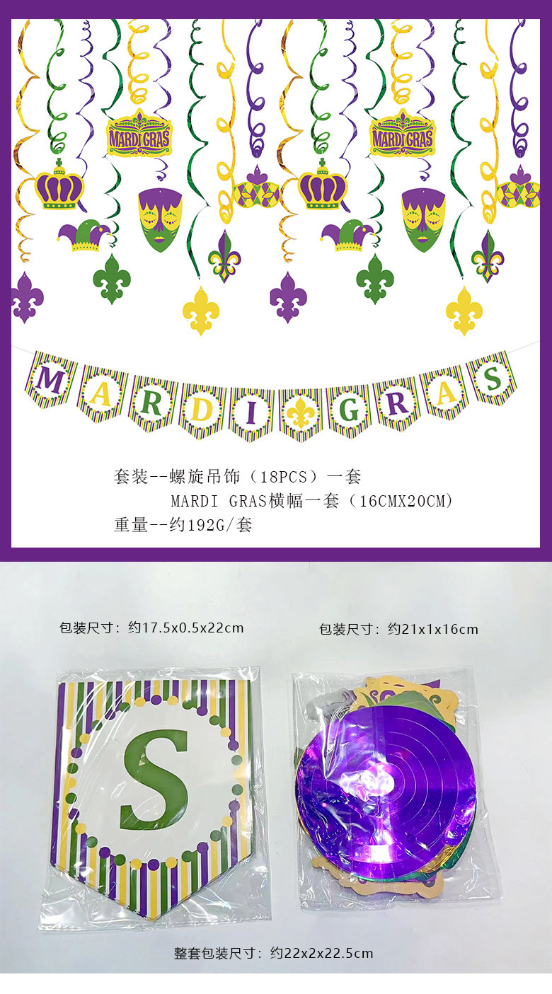 | Color | Carnaval (mardi gras) bandera / colgante en espiral (set) |
