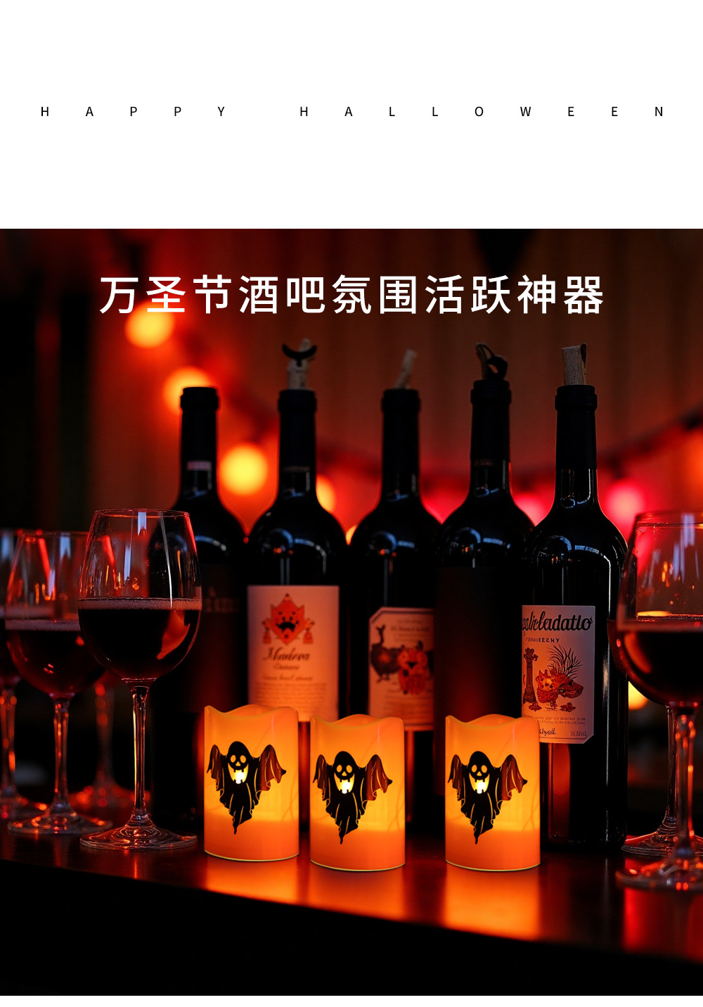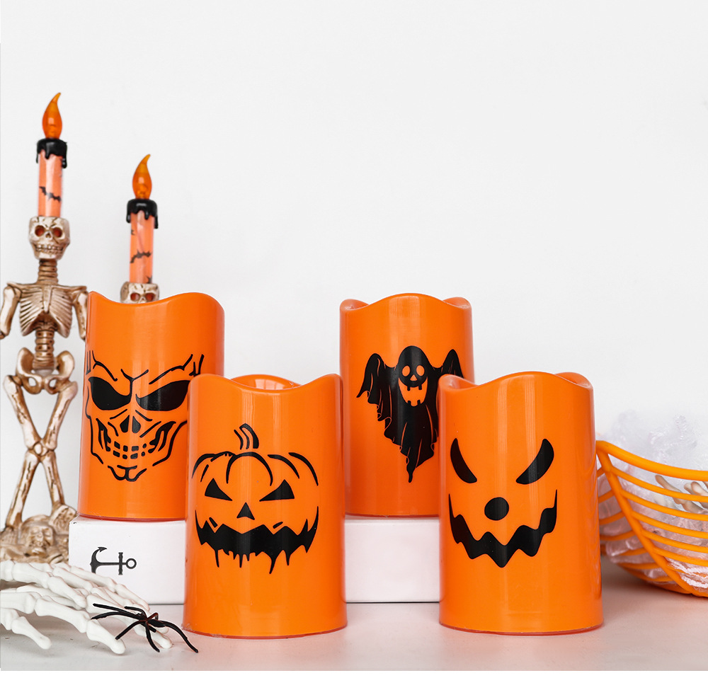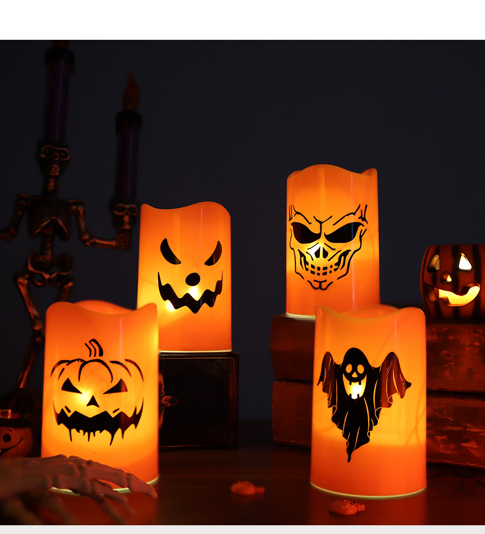 Transfronterizo al por mayor de Halloween LED lámpara de vela electrónica esqueleto patrón fantasma diseño de lámpara de noche decoración lámpara de calabaza