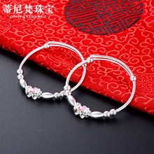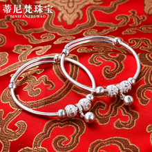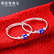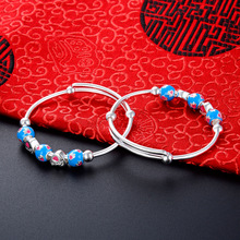 S990 plata pura con cuentas amarillo Calcedonia bebé pulsera de plata esterlina niños y niñas bebé Luna Llena pulsera de plata Anillo de pie joyería