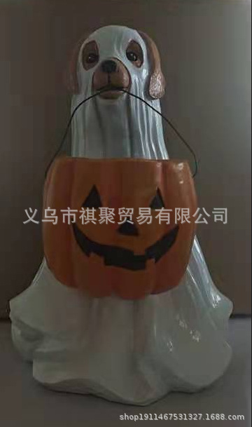 Estación independiente cachorro calabaza bolos de dulces decoración de Navidad balcón puerta de almacenamiento de regalos artesanías de resina