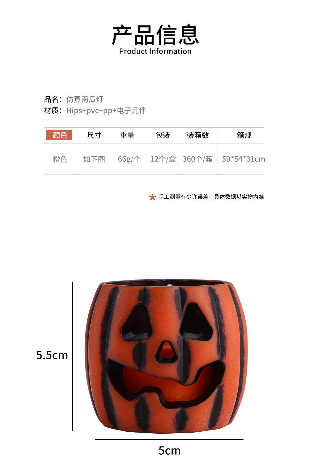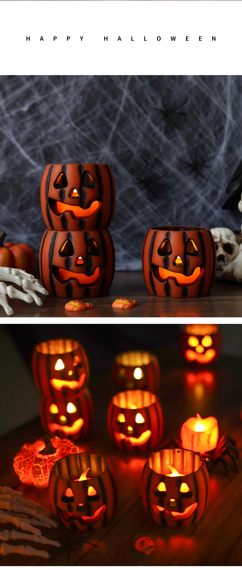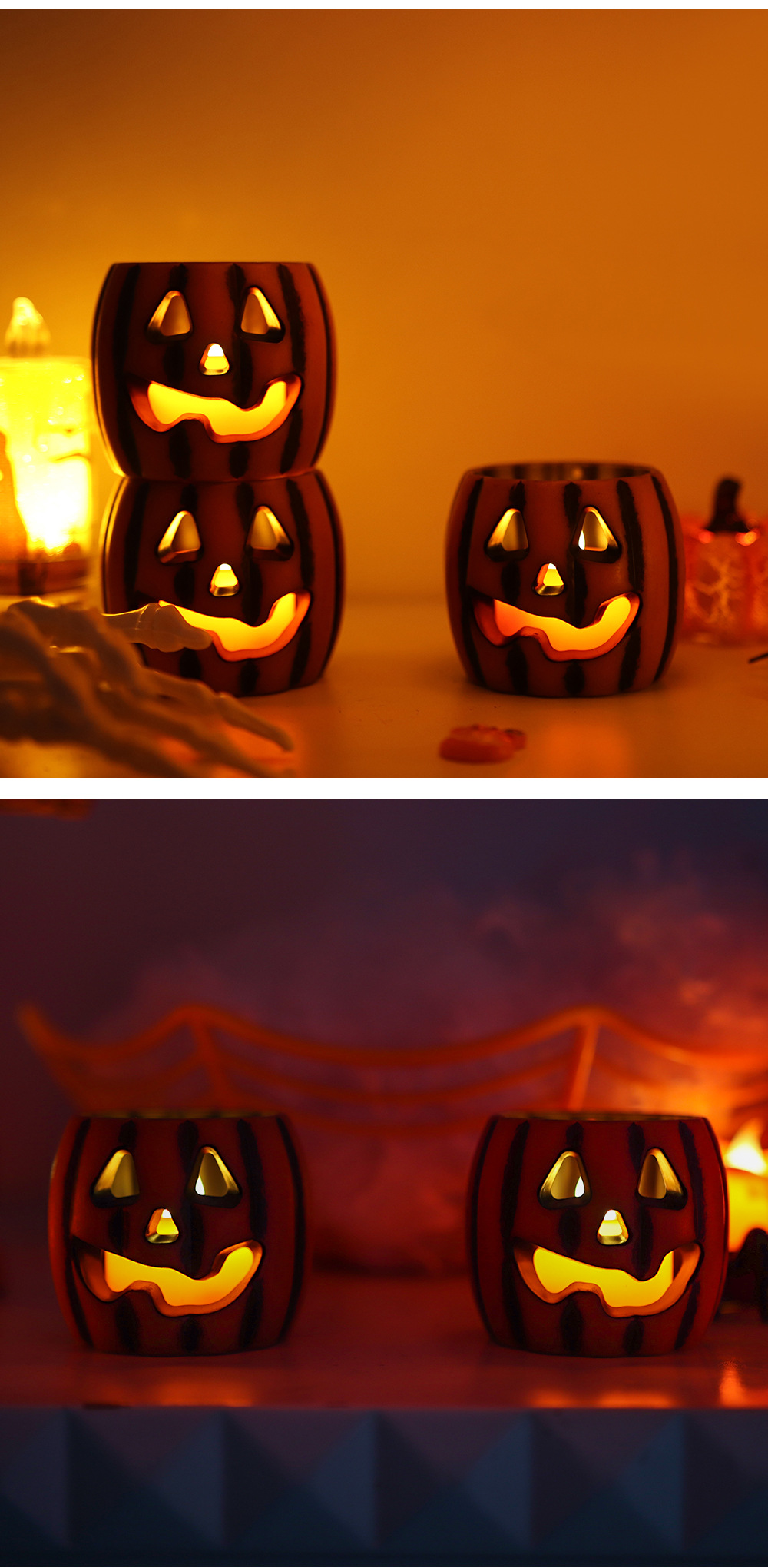 Transfronterizo nueva lámpara de calabaza decoración de Halloween LED lámpara de vela electrónica diseño creativo accesorios adornos lámpara de noche