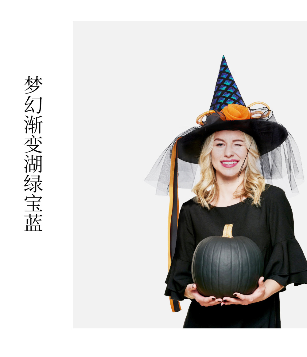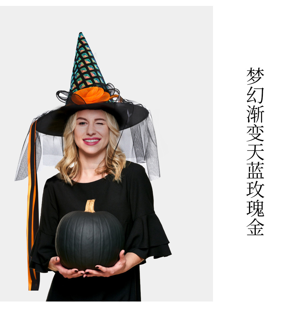 Nuevo sombrero de Halloween transfronterizo sombrero de bruja fiesta de disfraces accesorios de decoración de fiesta sombrero de bruja brillante