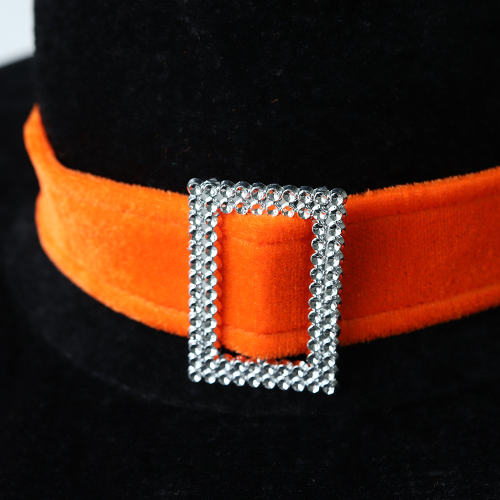Halloween sombrero de bruja, sombrero de silla, correa de plata, sombrero de brujo, maquillaje de fiesta, accesorios de vestuario