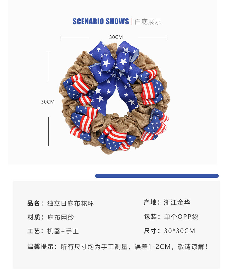 Decoraciones del Día de la Independencia transfronterizas inswind bandera de los Estados Unidos coronas de cinta colgante de la fiesta del Día de la Independencia colgante de la puerta