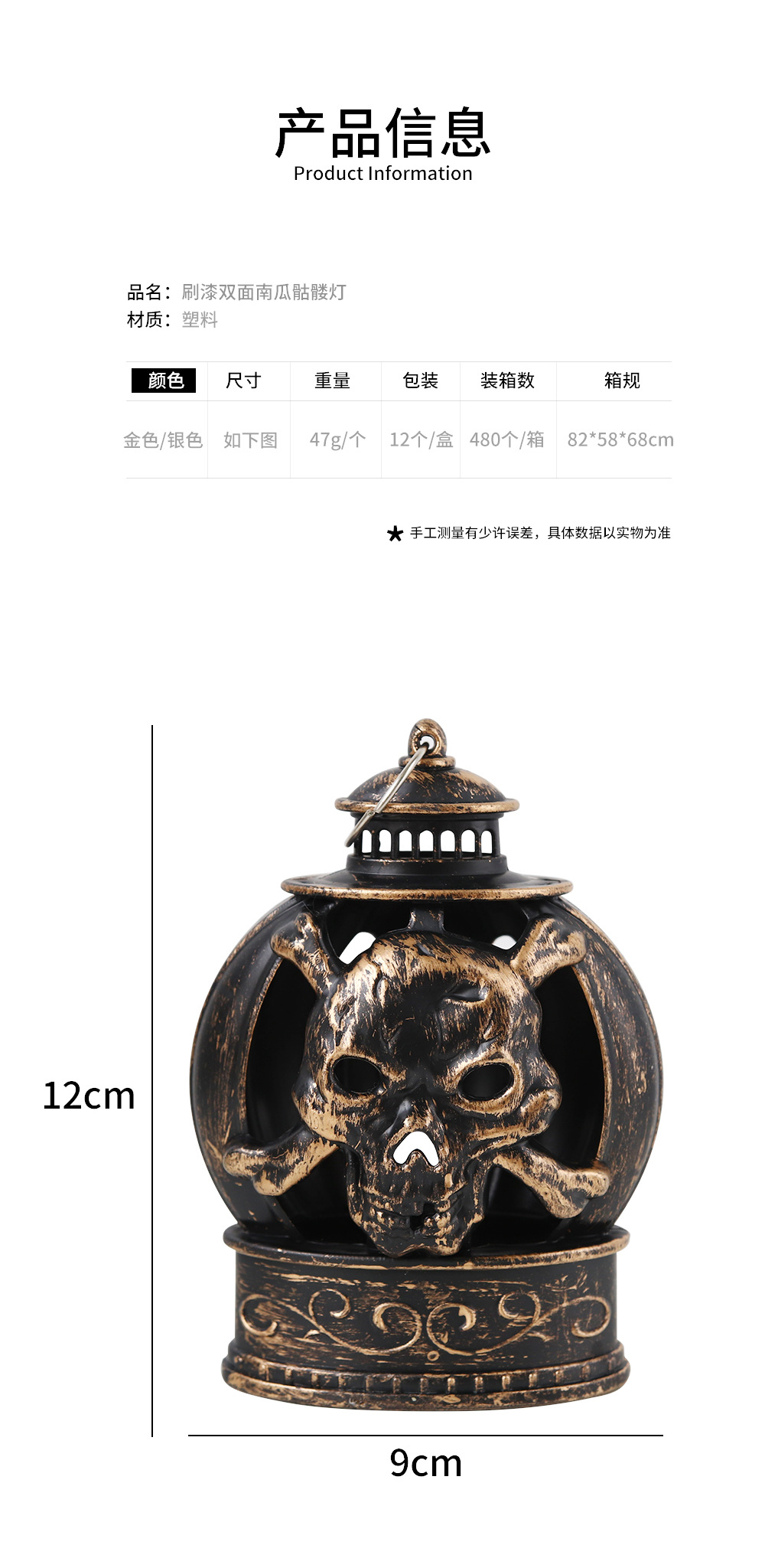 | Color | Lámpara de calabaza de plata pintada, lámpara de calabaza de oro pintada |