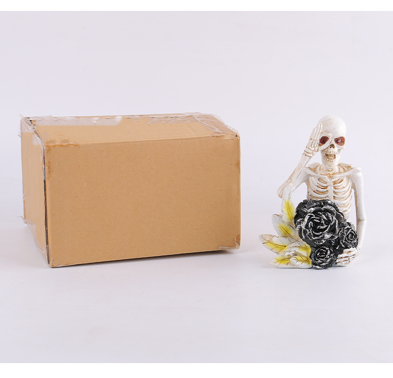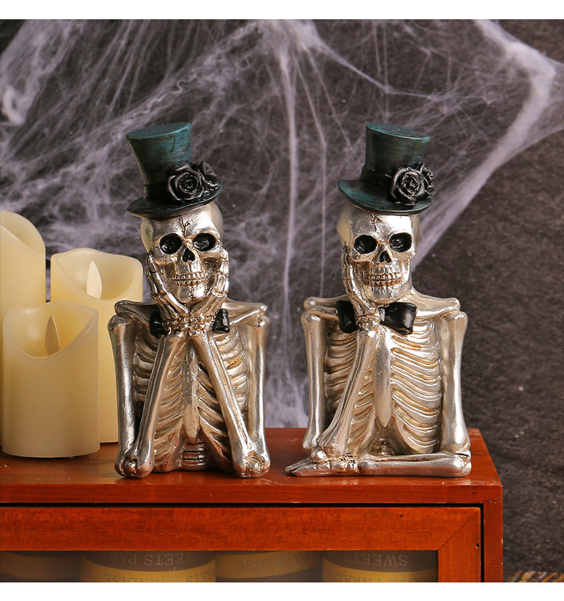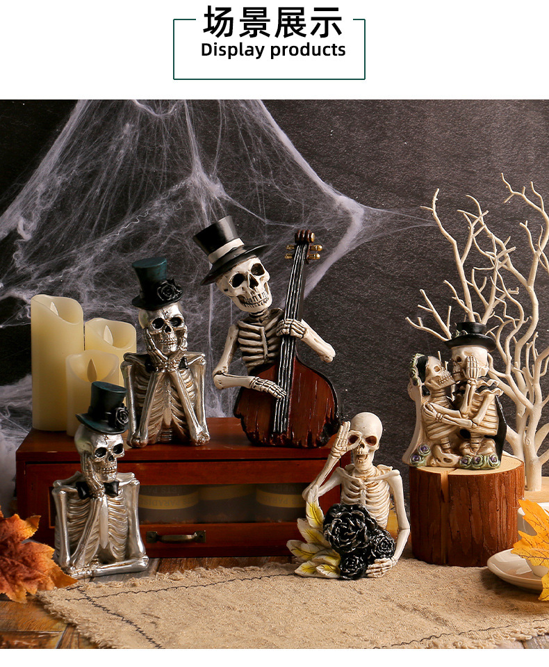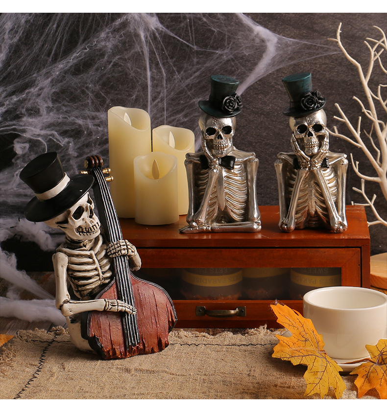 Adornos de personajes de calavera de dibujos animados de resina de Halloween, habitación secreta, casa embrujada, atmósfera divertida, adornos de resina de cráneo