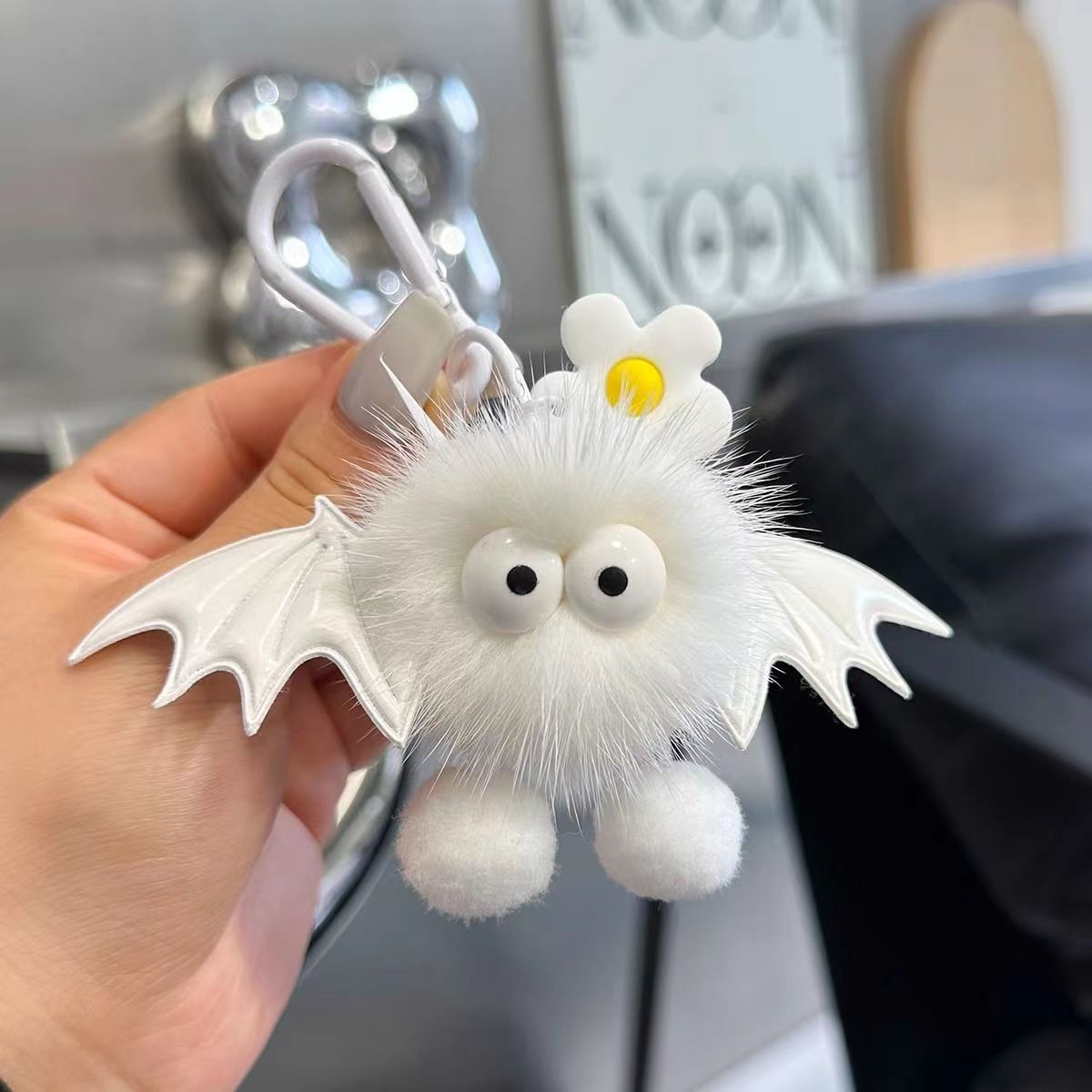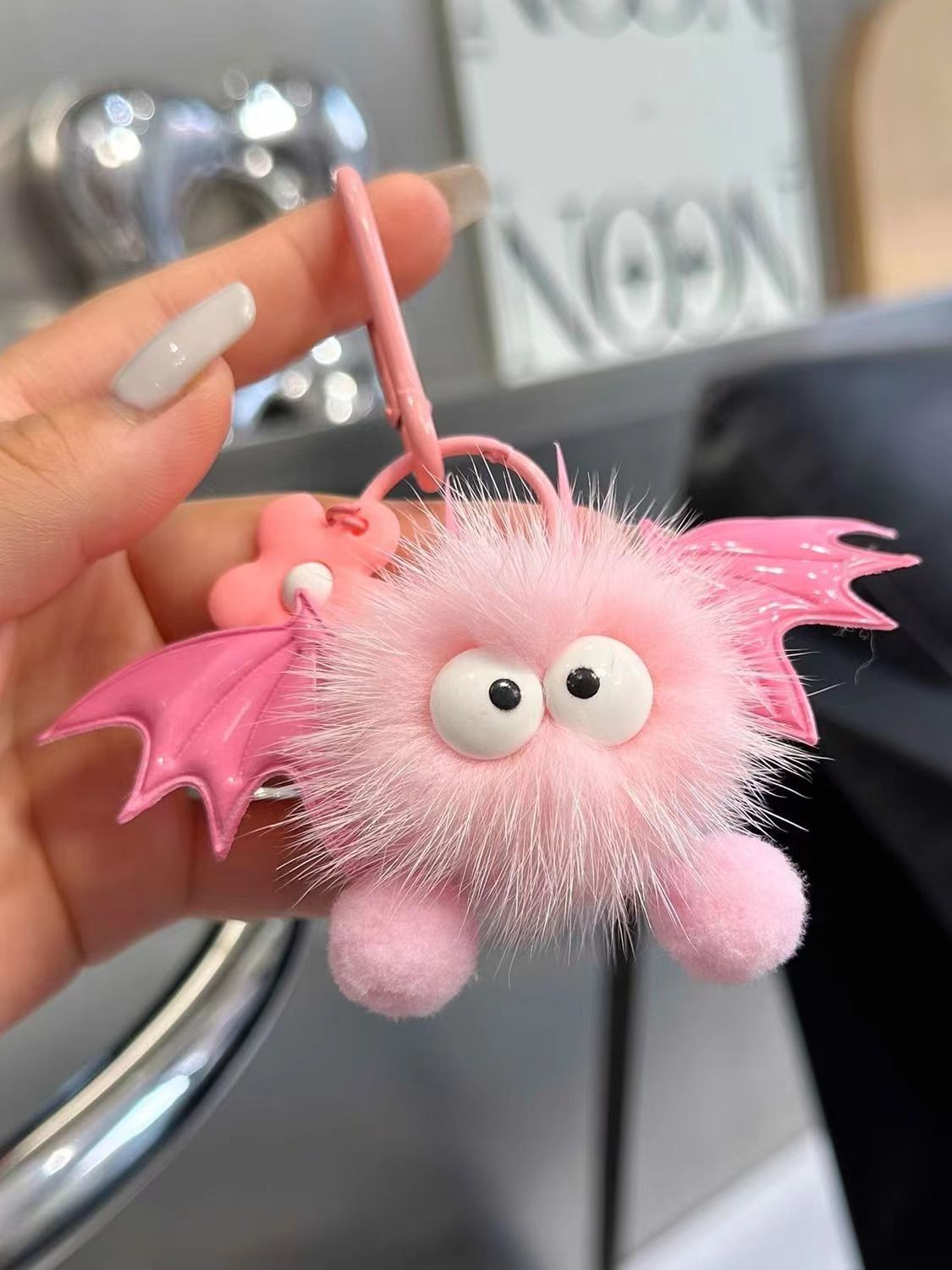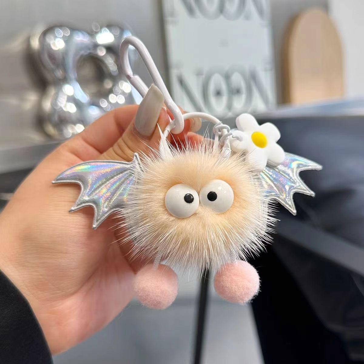 Linda piel de visón, murciélago pequeño, bola de carbón, mochila escolar, colgante, muñeca, coche, felpa, llavero, cadena, colgante, mujer