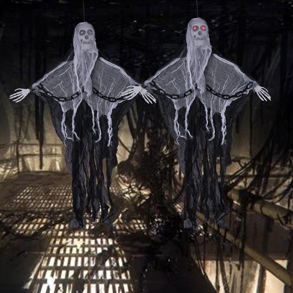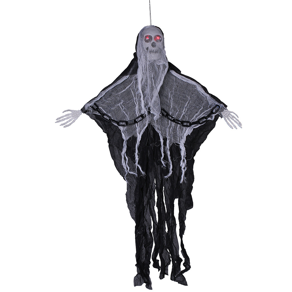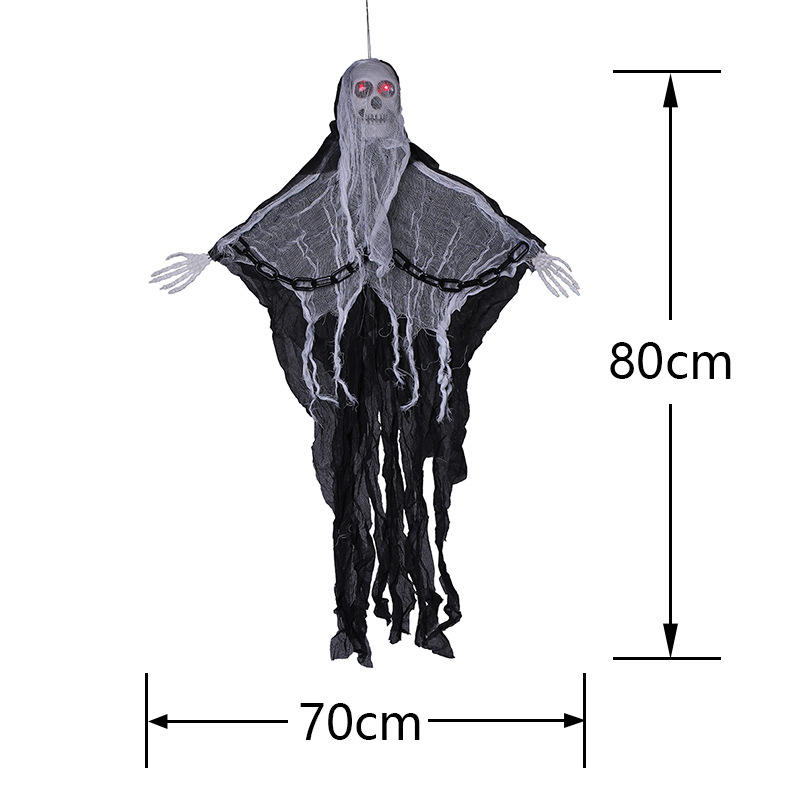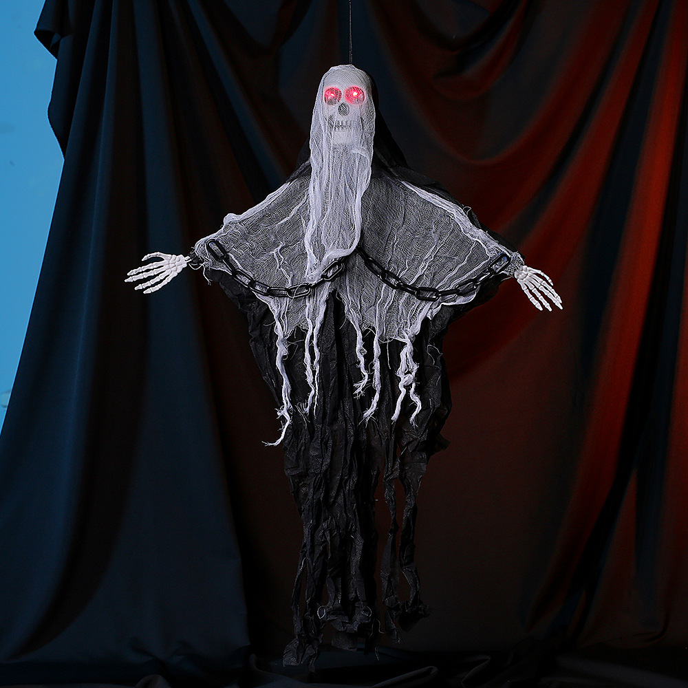 Decoración transfronteriza de Halloween, fantasma colgante, cadena de hierro, fantasma colgante, control de voz luminoso, esqueleto, fantasma colgante, decoración de terror, juguete complicado