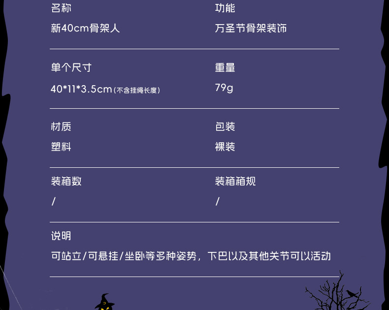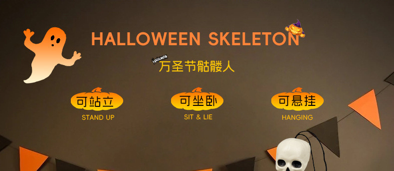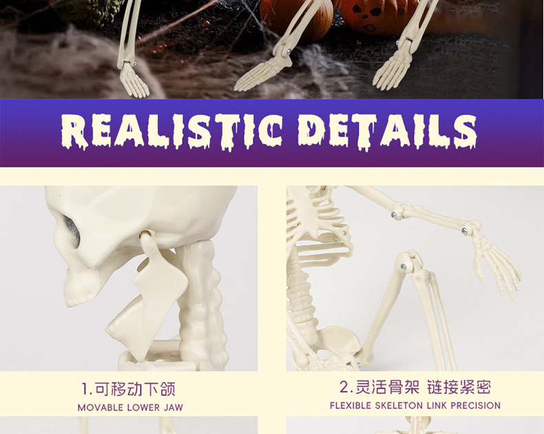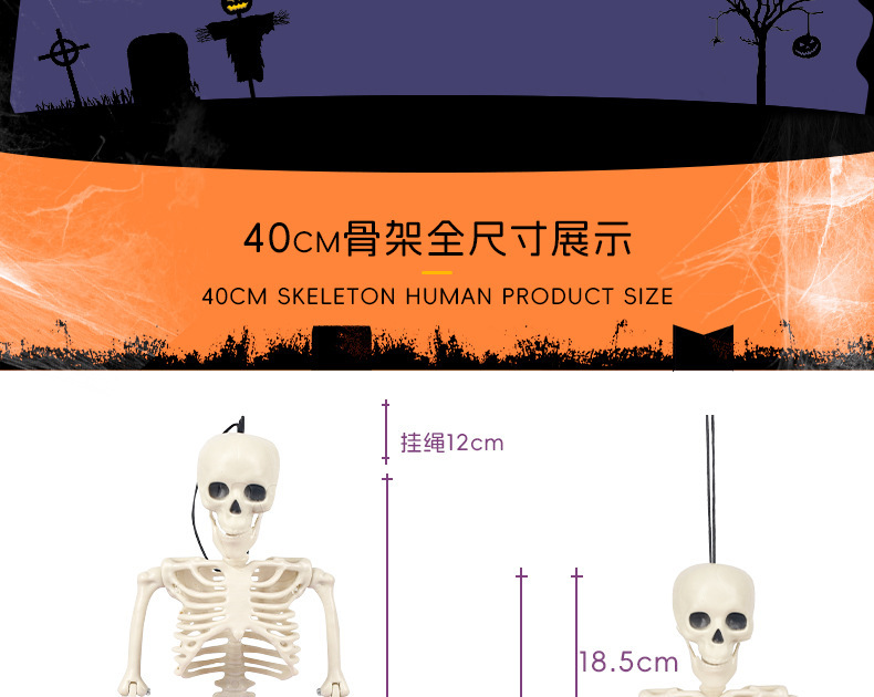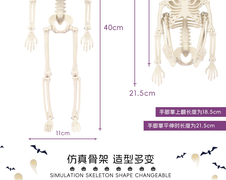 Modelo de plástico esqueleto de Halloween 40cm esqueleto Halloween jardín decoración de fiesta accesorios casa embrujada decoración de patio