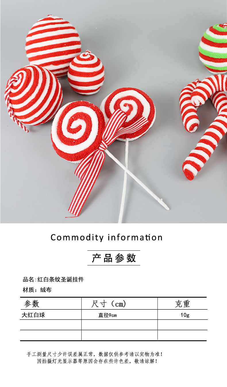 Navidad franela a rayas rojas y blancas bola de Navidad bastón caramelo árbol de Navidad decoración colgante accesorios accesorios adornos