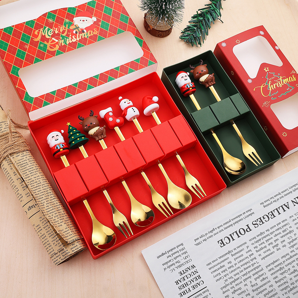 Cucharas nórdicas INS navideñas – cucharas doradas de postre o café de acero inoxidable