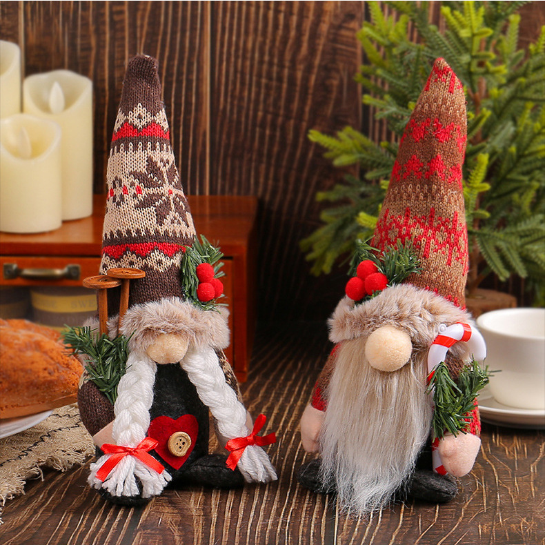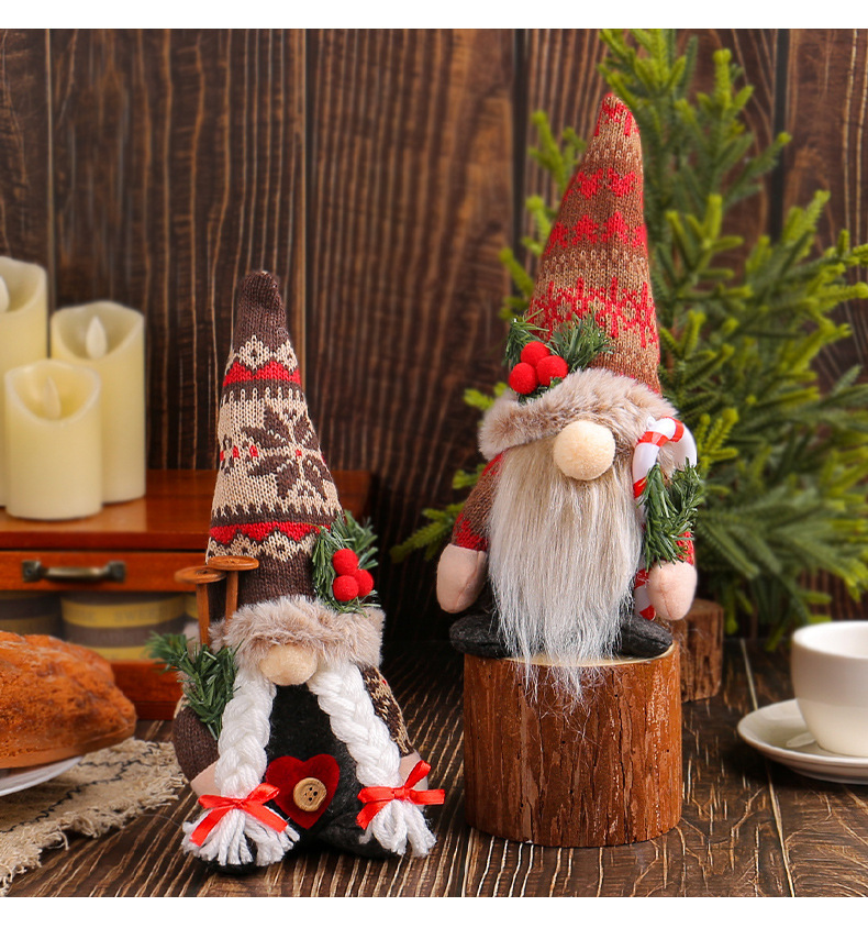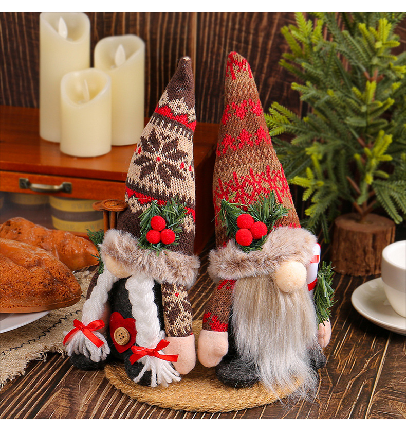 Navidad de punto gorra de nieve muñeca adornos creativos muñeca muñeca muñeca sin cara adornos
