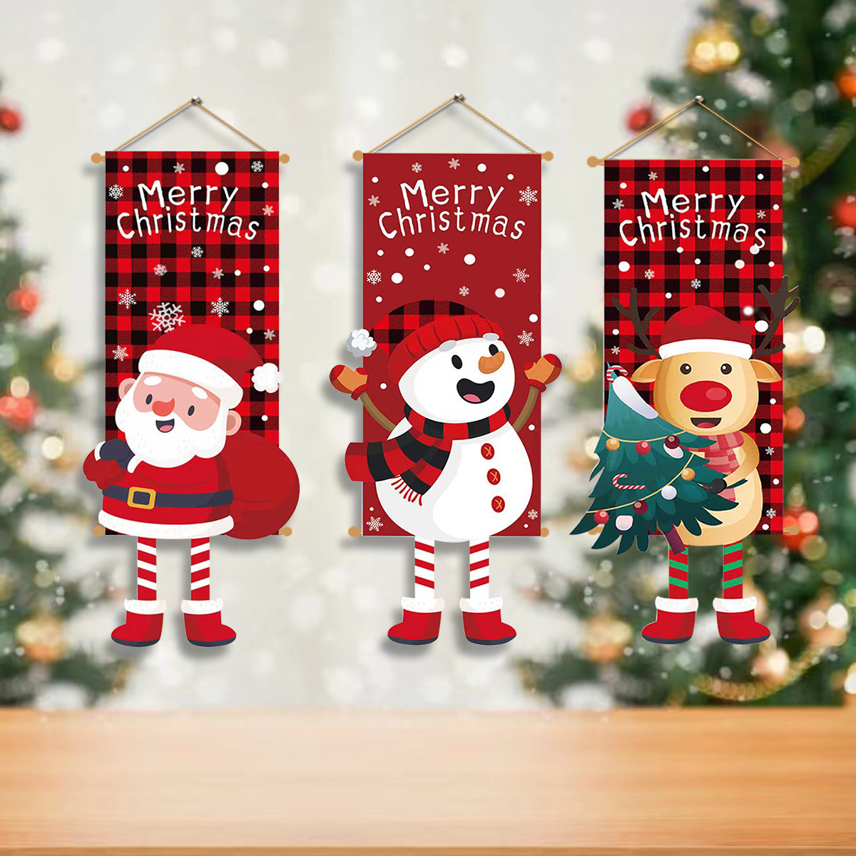 Navidad transfronteriza decoraciones de bandera tela impresa vieja Navidad restaurante bar fiesta atmósfera decoraciones cortinas