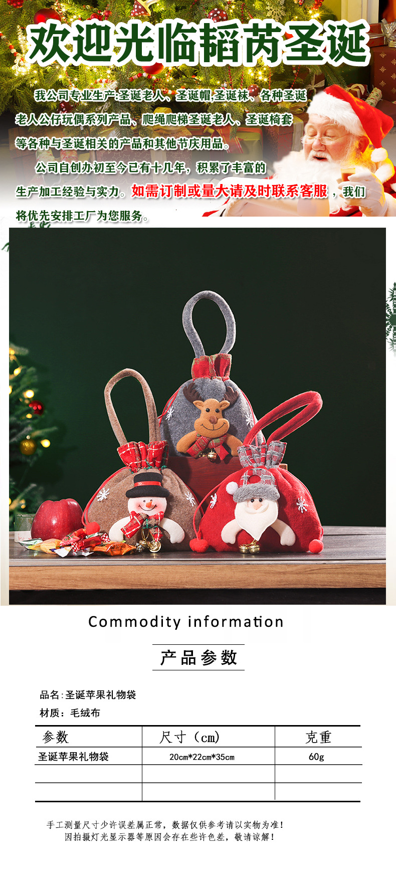 Navidad decoración pequeña bolsa de regalo Nochebuena manzana caja de embalaje bolsas de mano dulces frascos bolsas de frutas al por mayor