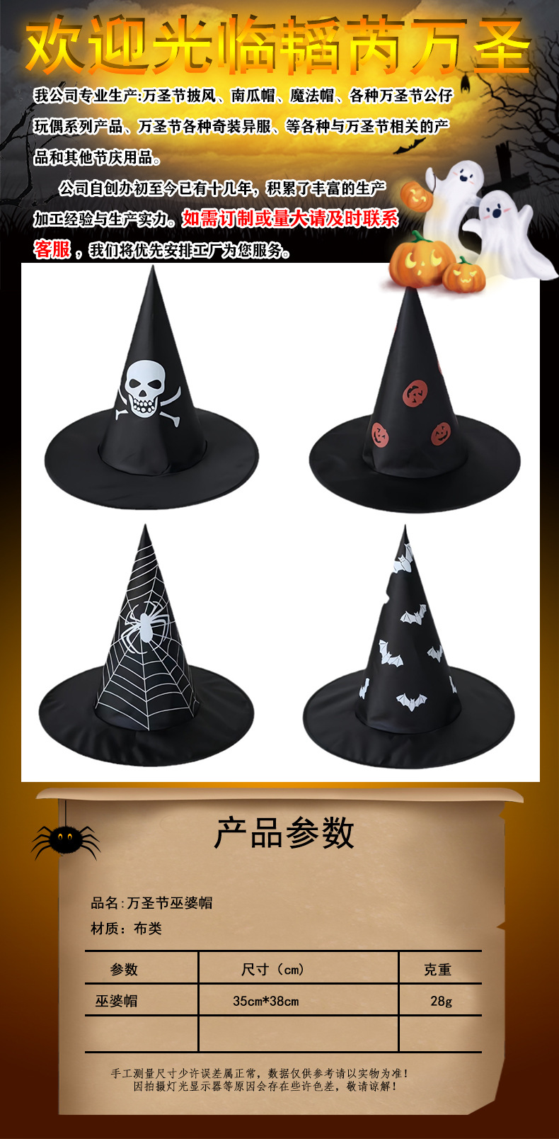 | Color | Sombrero de bruja de calabaza, sombrero de bruja de telaraña, sombrero de bruja de hueso, sombrero de bruja de murciélago, sombrero de bruja negro puro |