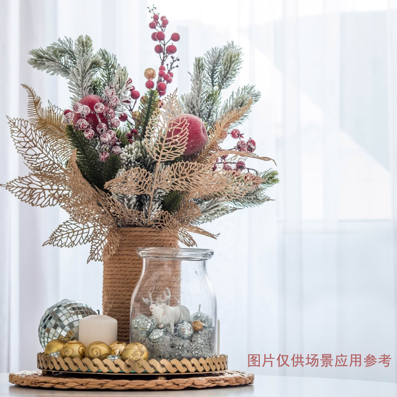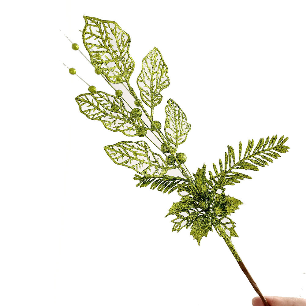 Flores doradas decorativas navideñas – lirios y ramas simuladas para árbol de Navidad y ambiente festivo