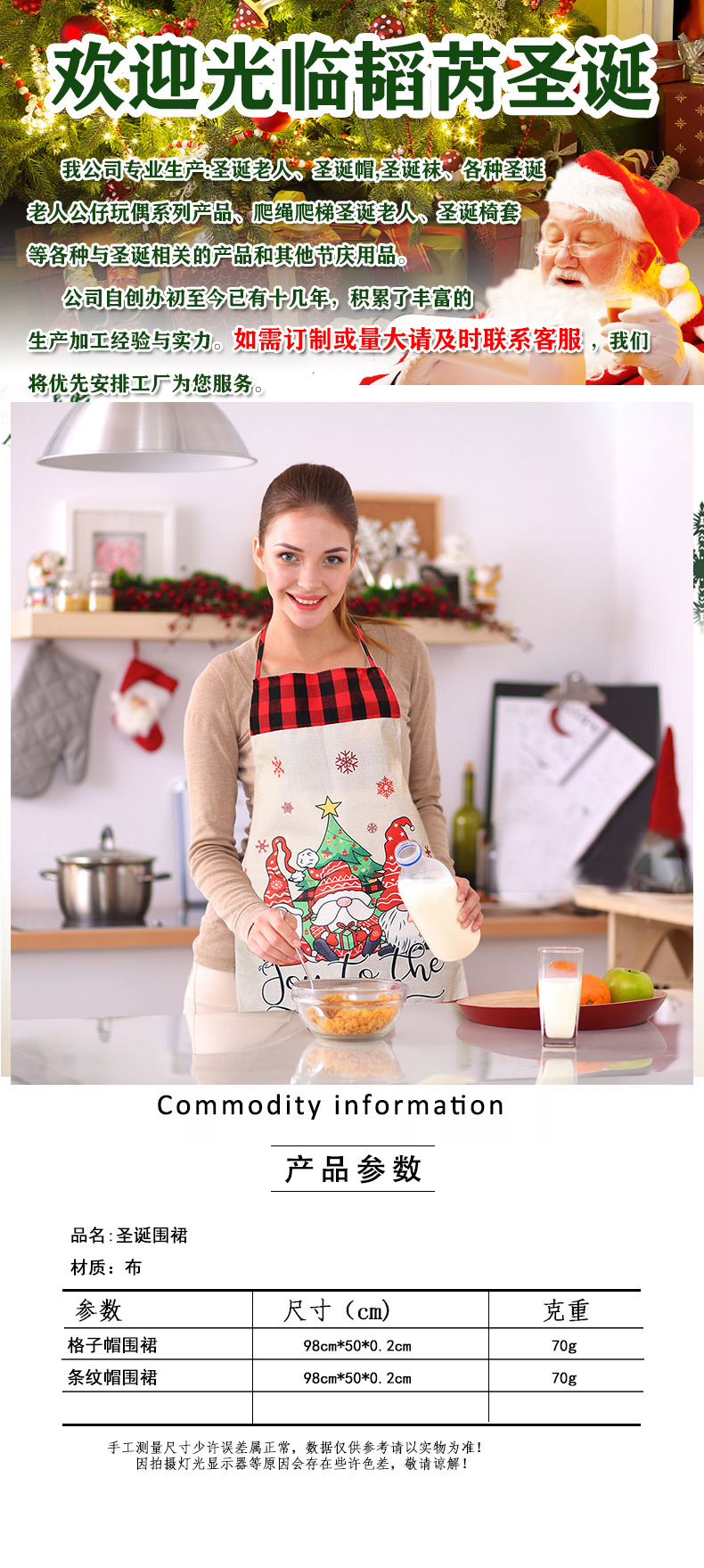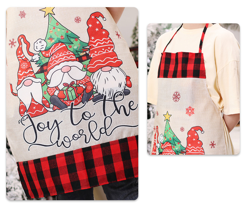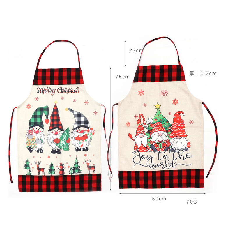 Navidad antiincrustante delantal lino sin cara muñeca delantal tela de color delantal restaurante delantal de cocina al por mayor