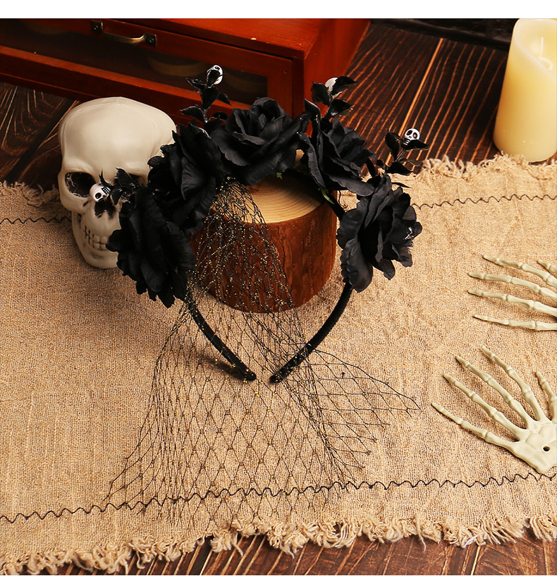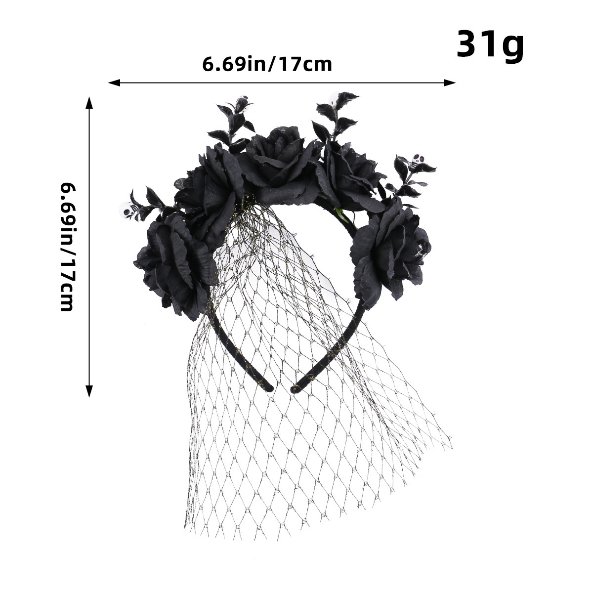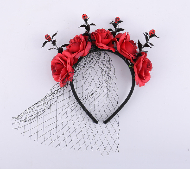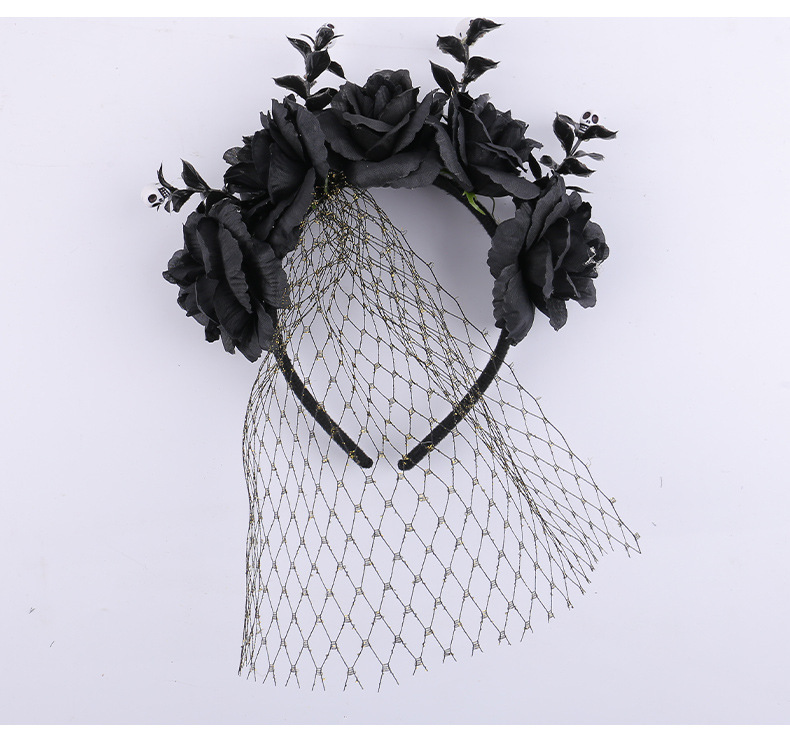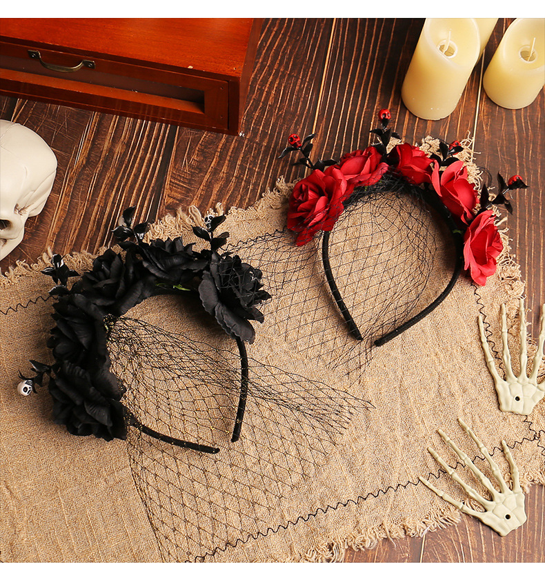 Halloween rosas mallas de hilo banda de cabello fiesta espectáculo de fantasmas botones de cabeza guirlandas oscuras banda de cabello adornamientos para el cabello al por mayor